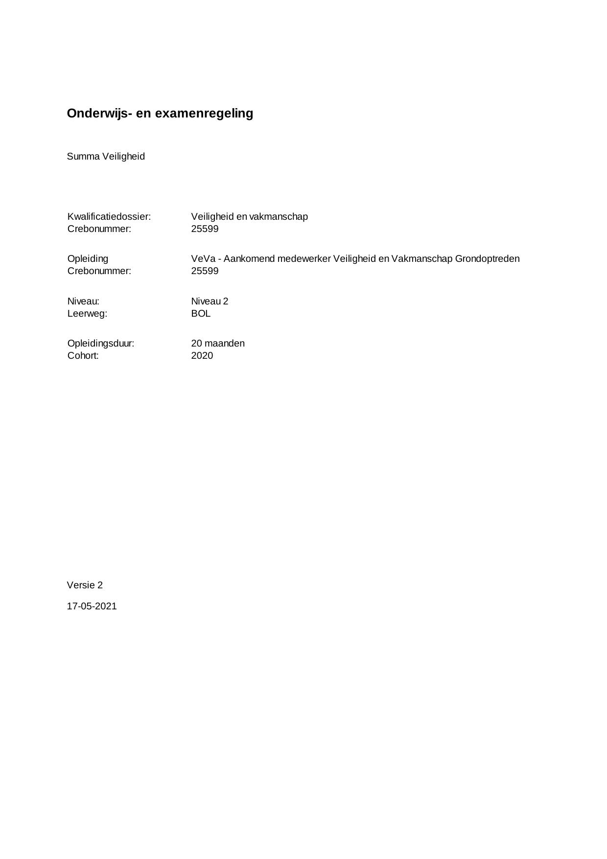 VeVa - Aankomend medewerker Veiligheid en Vakmanschap Grondoptreden 25599BOL20.01 in cohort 2020-2021