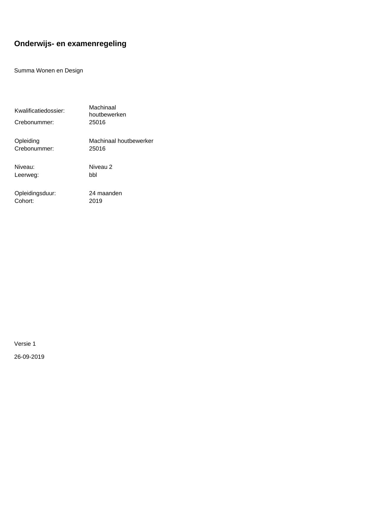 Machinaal houtbewerker 25016BBL24.01 in cohort 2019-2020