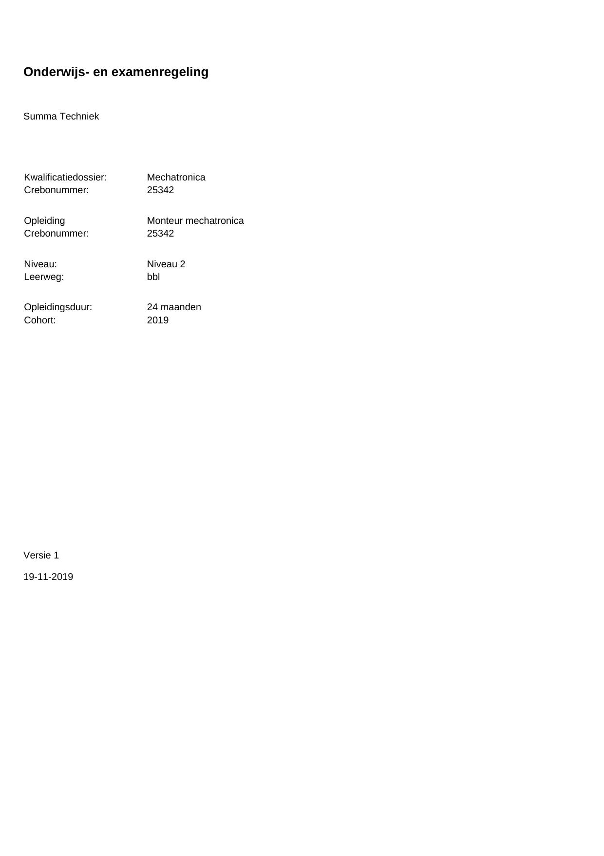 Monteur mechatronica 25342BBL24.01 in cohort 2019-2020