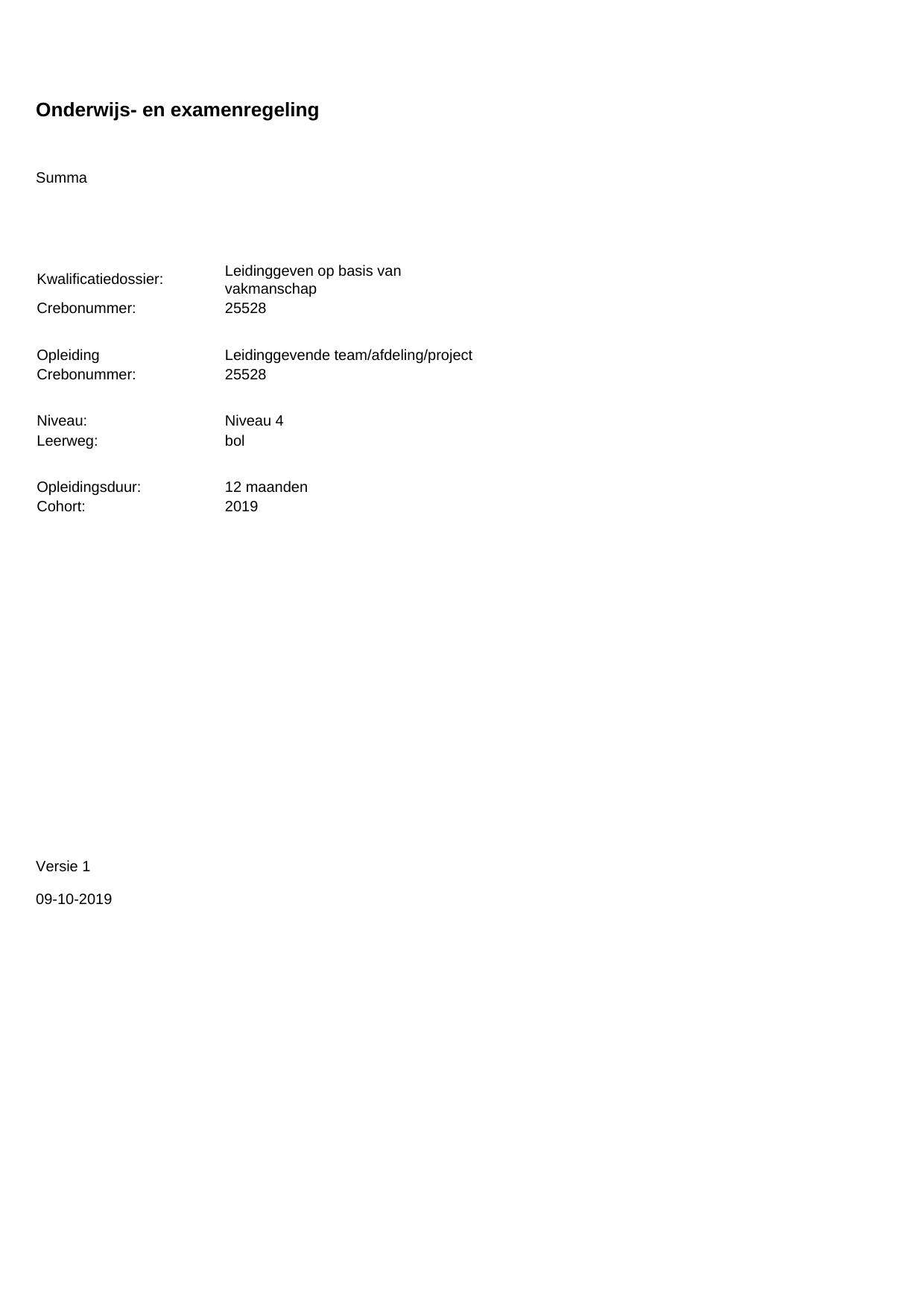 Leidinggevende team/afdeling/project 25160BOL12.01 in cohort 2019-2020