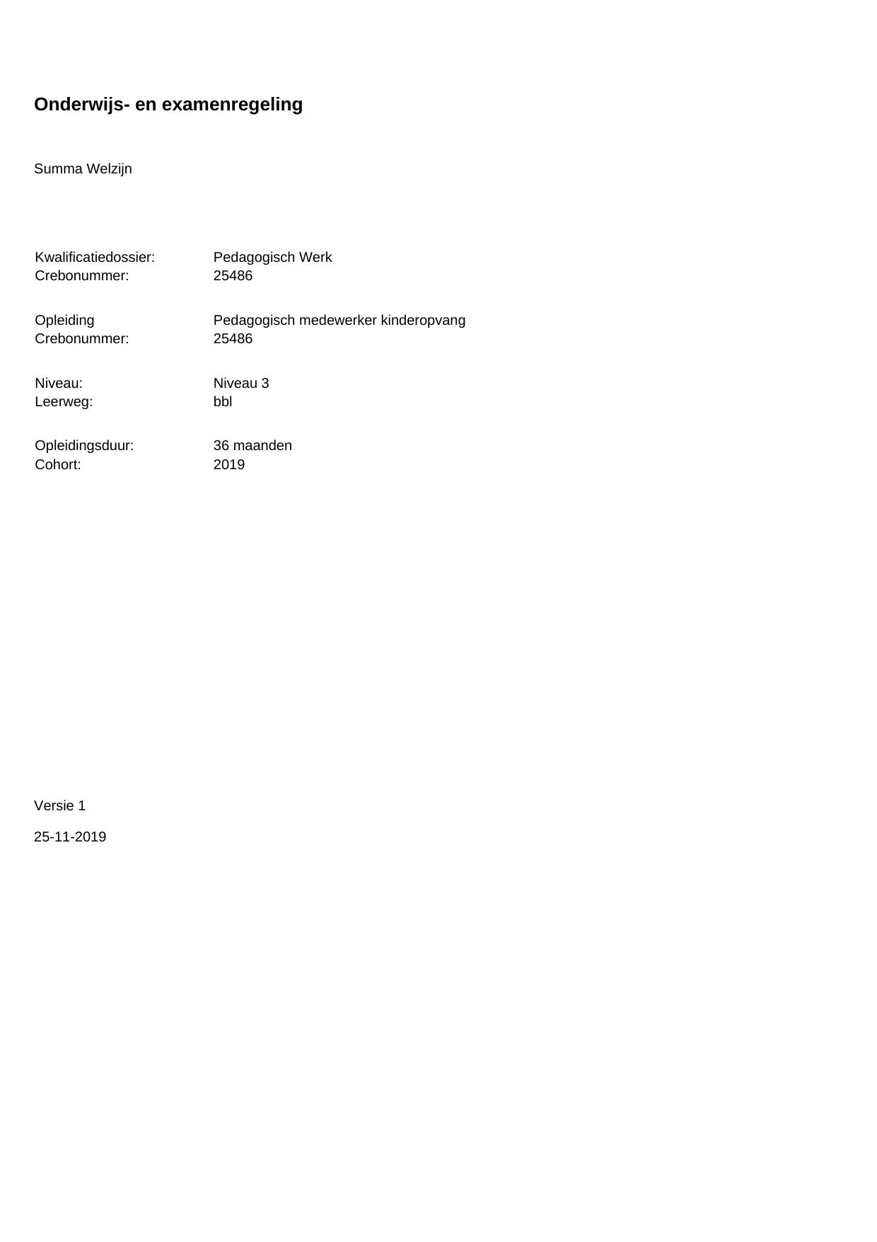 Pedagogisch medewerker kinderopvang 25486BBL36.01 in cohort 2019-2020