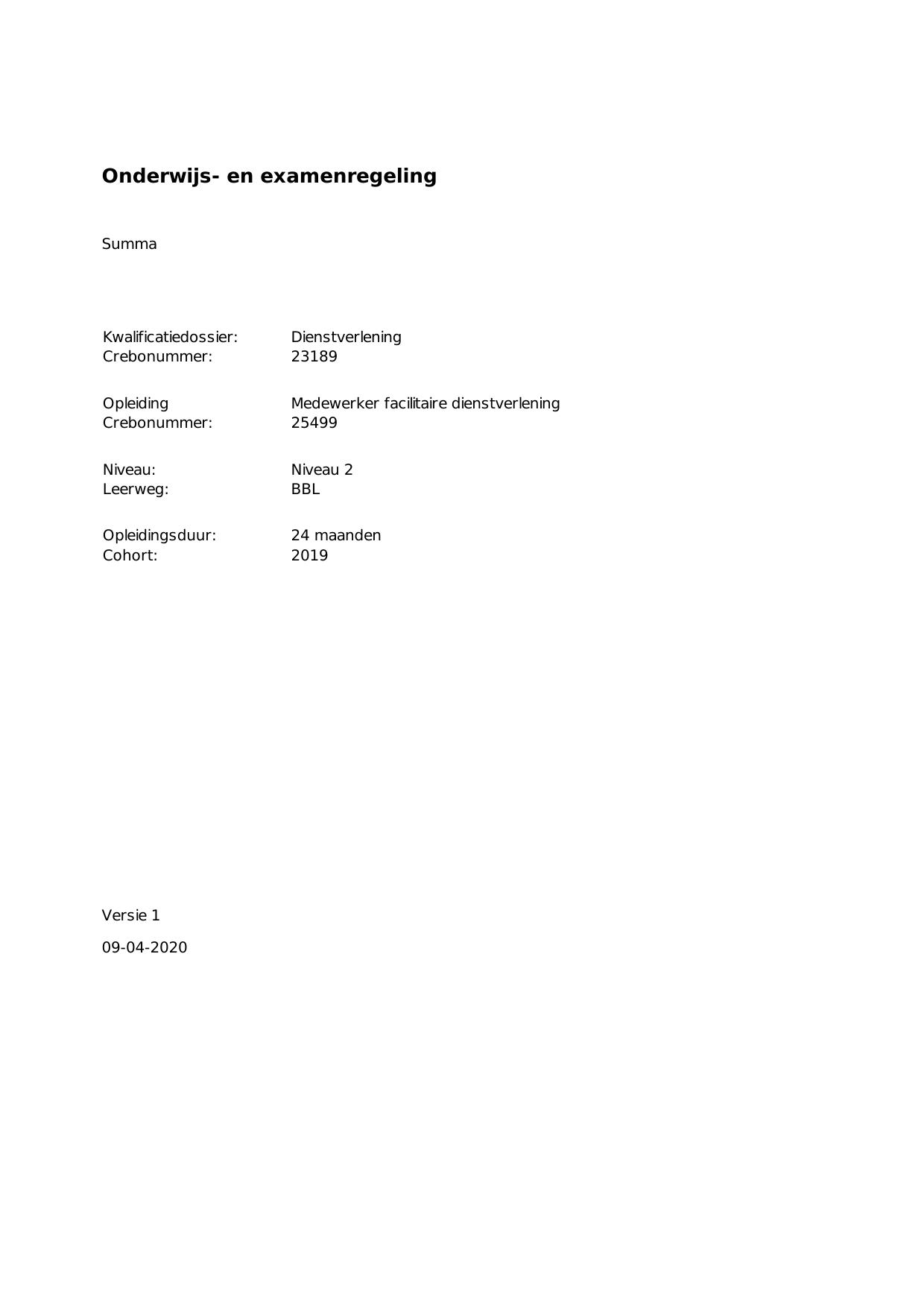 Medewerker facilitaire dienstverlening 25499BBL24.02 in cohort 2019-2020