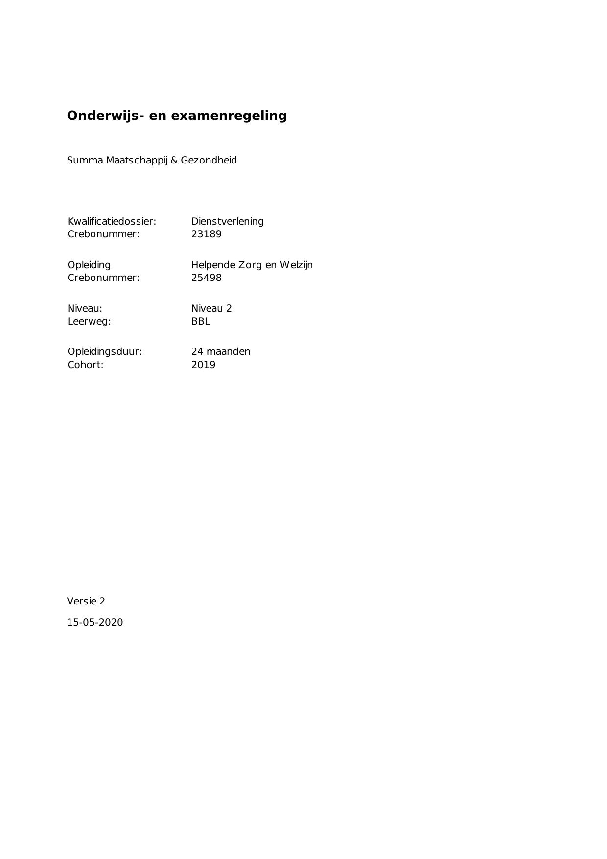 Helpende Zorg en Welzijn 25498BBL24.02 in cohort 2019-2020