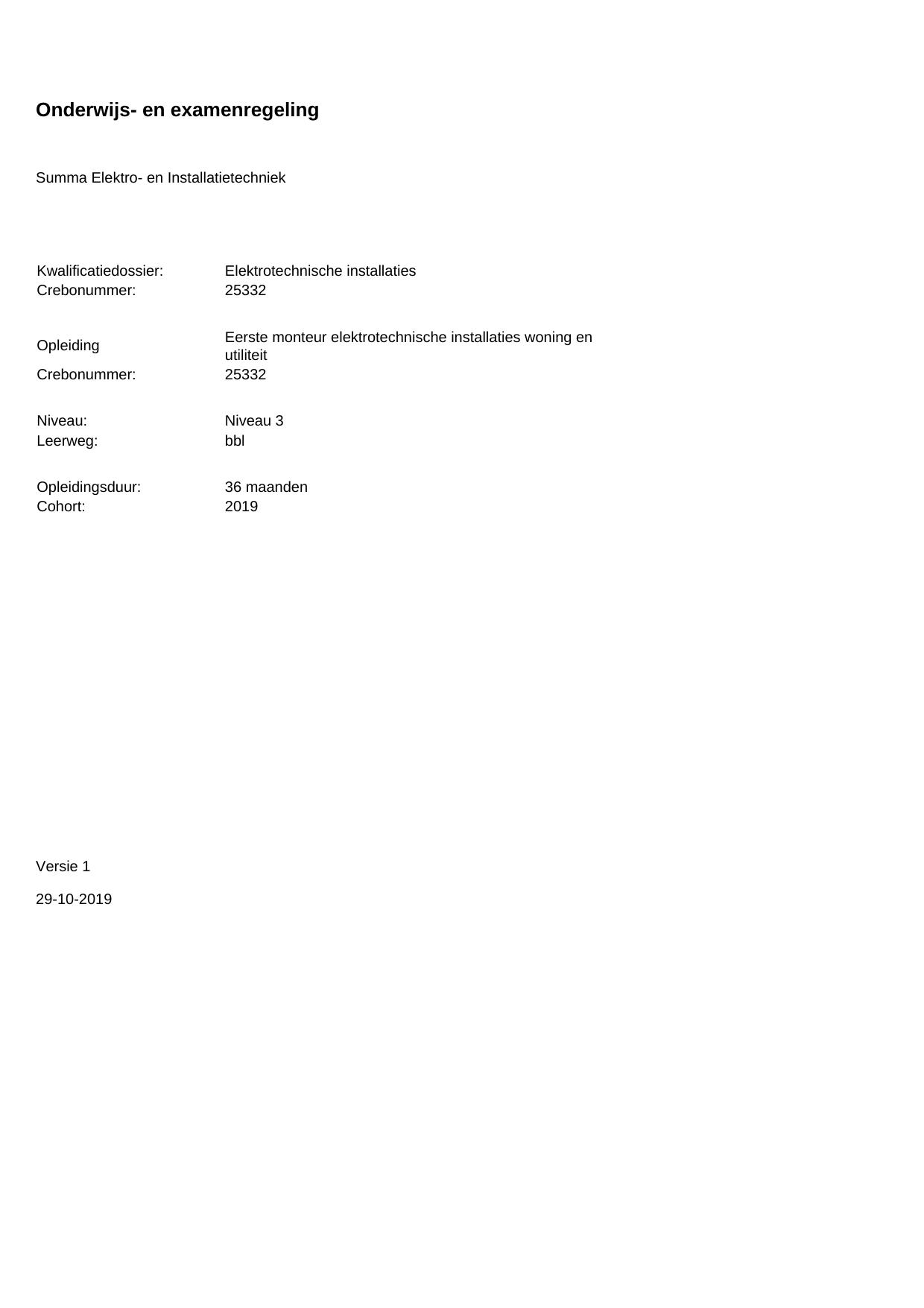 Eerste monteur elektrotechnische installaties woning en utiliteit 25332BOL36.01 in cohort 2019-2020