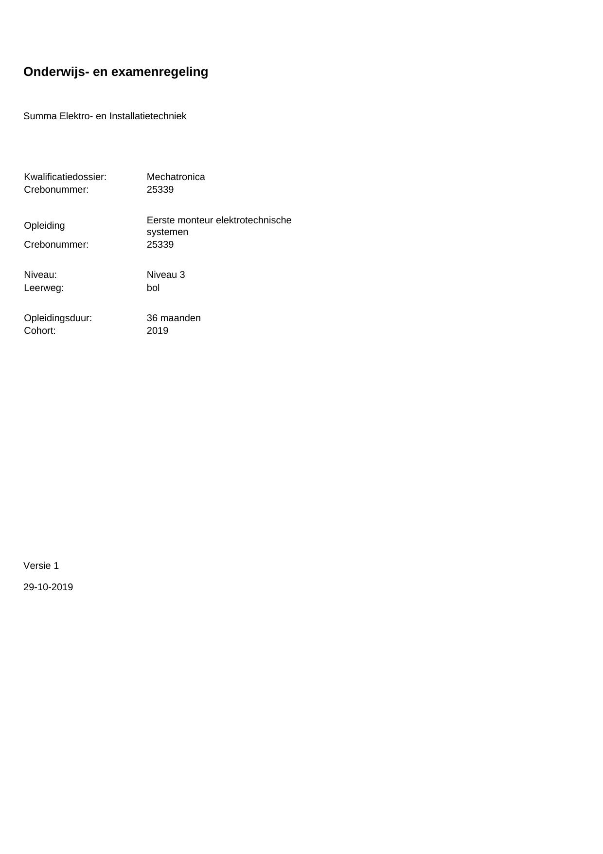 Eerste monteur elektrotechnische systemen 25339BOL36.02 in cohort 2019-2020
