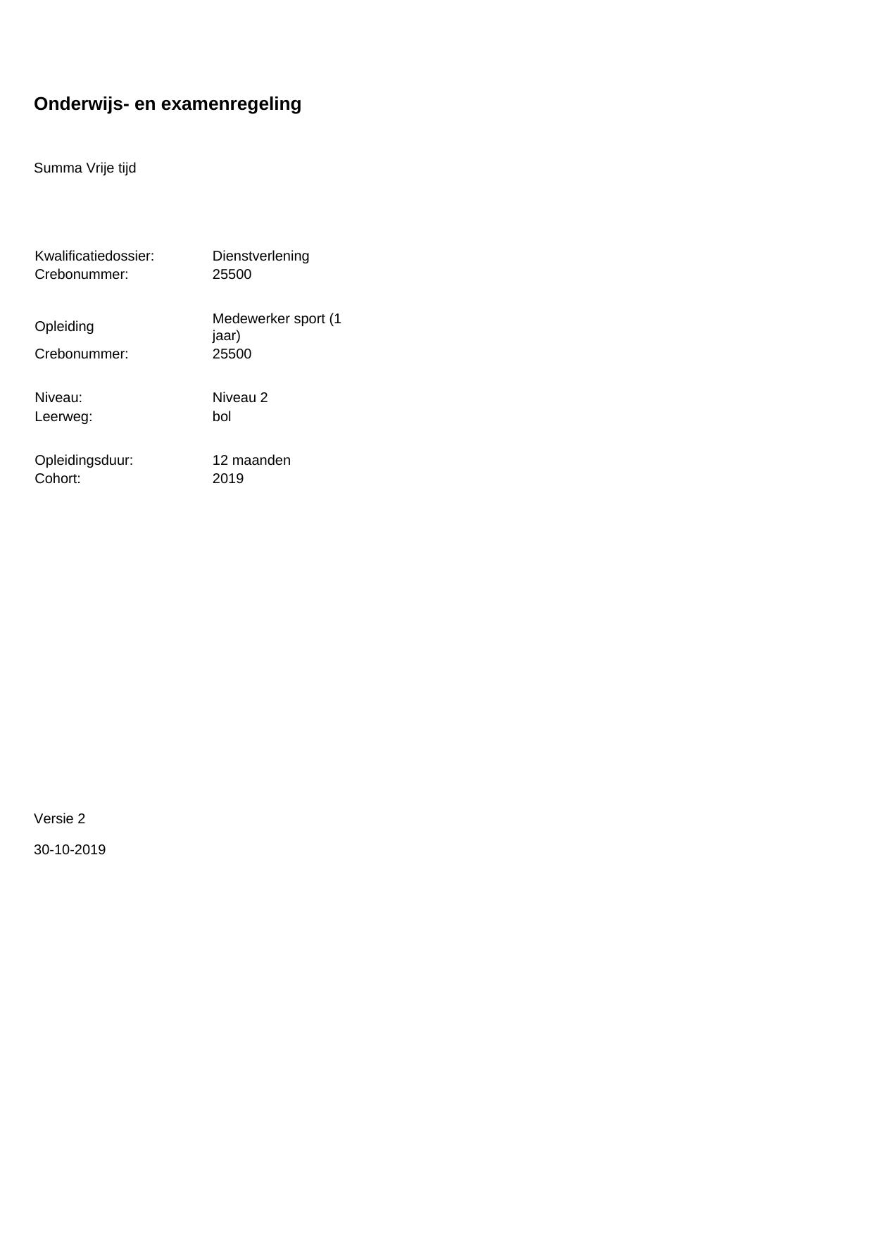 Medewerker sport (1 jaar) 25500BOL12.01 in cohort 2019-2020