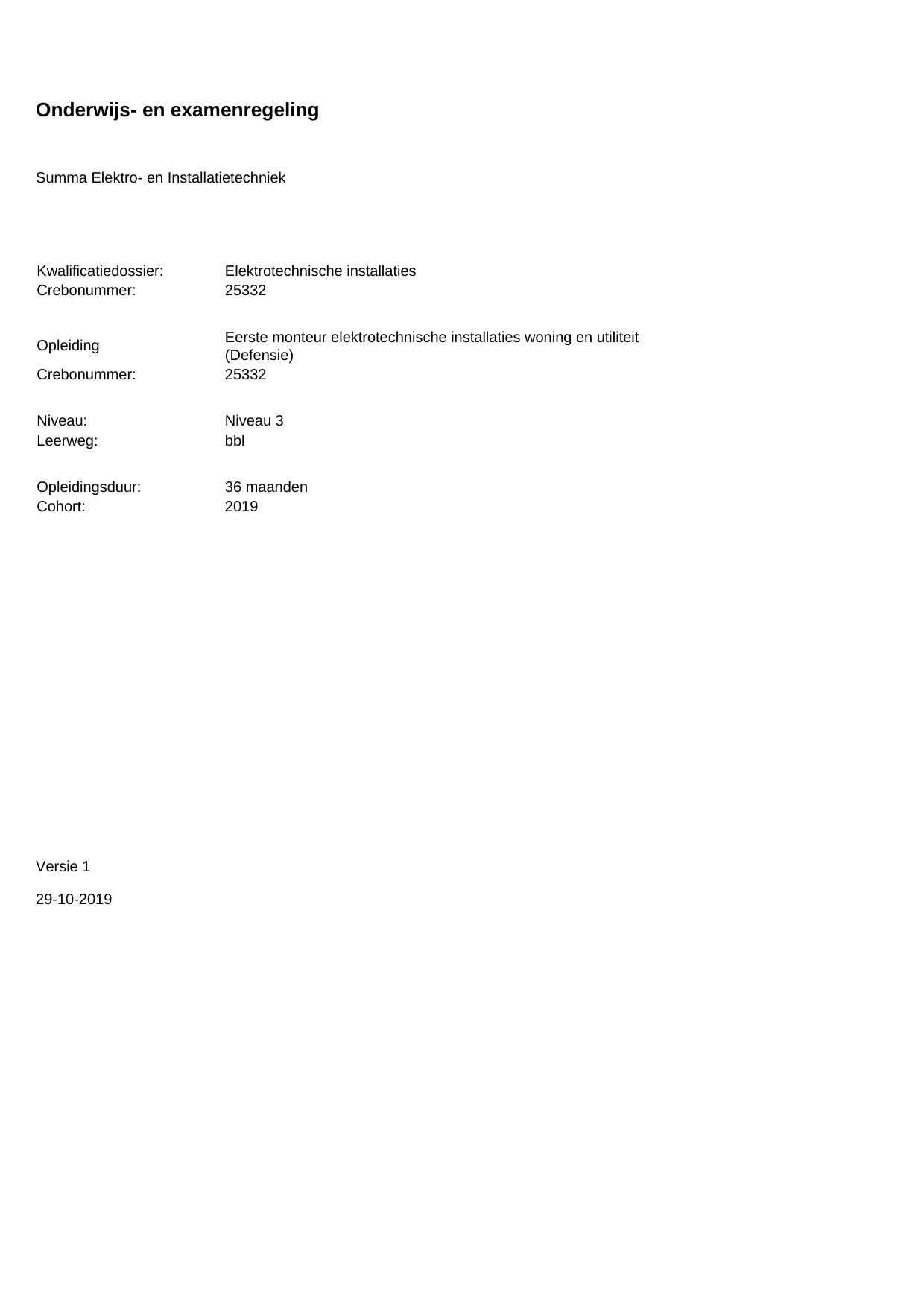 Eerste monteur elektrotechnische installaties woning en utiliteit (Defensie) 25332BBL36.03 in cohort 2019-2020