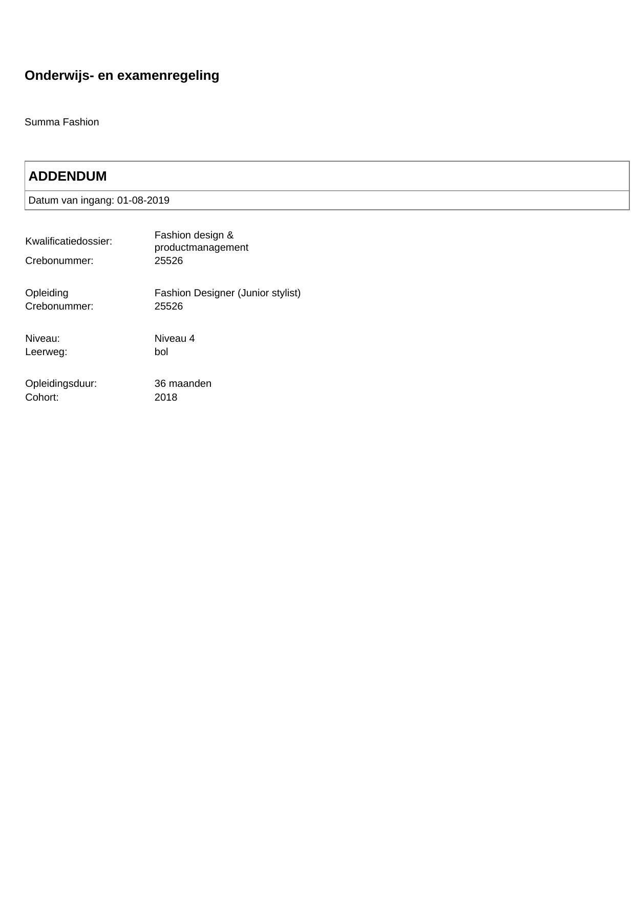 Fashion Designer (Junior stylist) 25526BOL36.01 in cohort 2018-2019