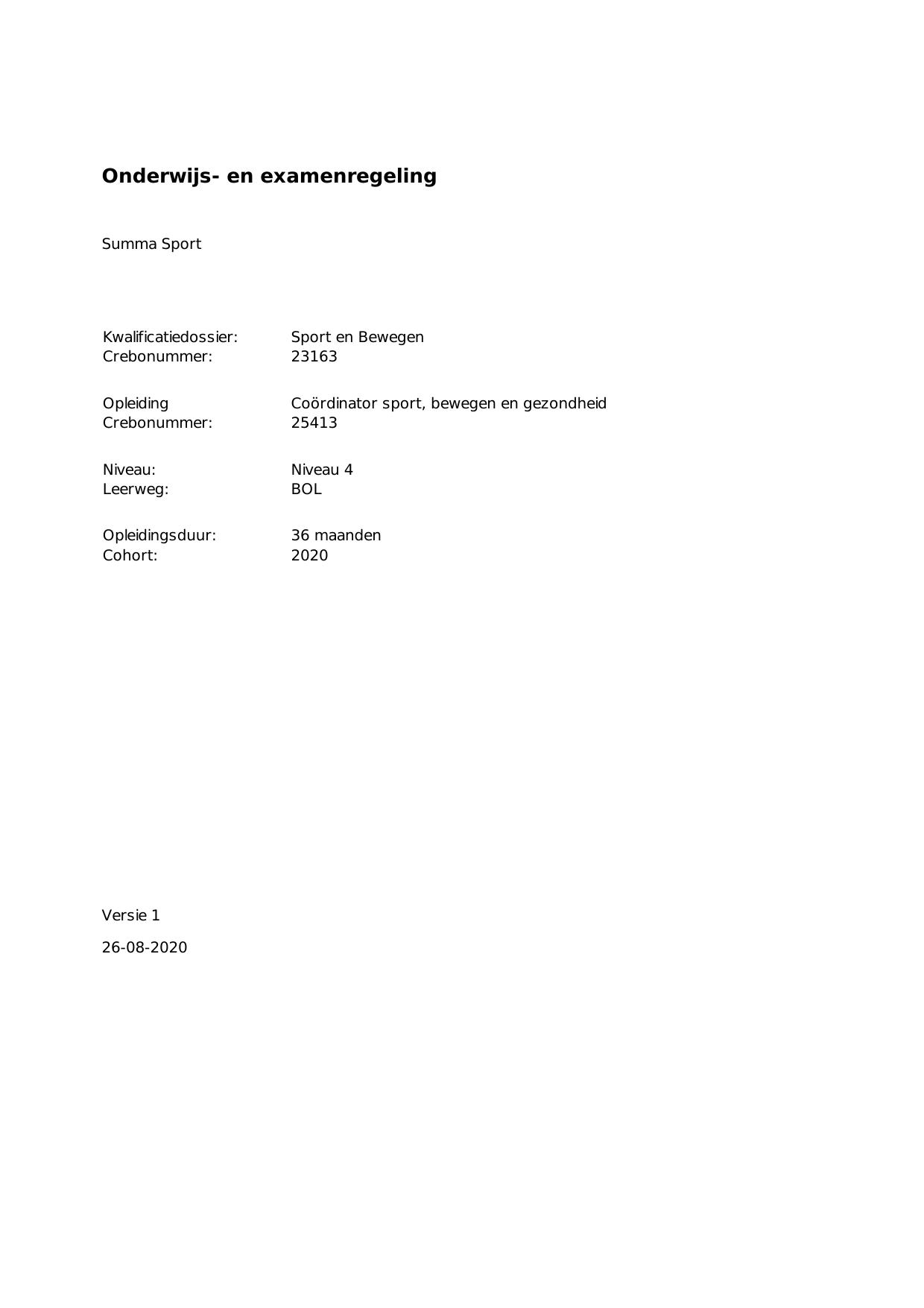 Coördinator sport, bewegen en gezondheid 25413BOL36.01 in cohort 2020-2021