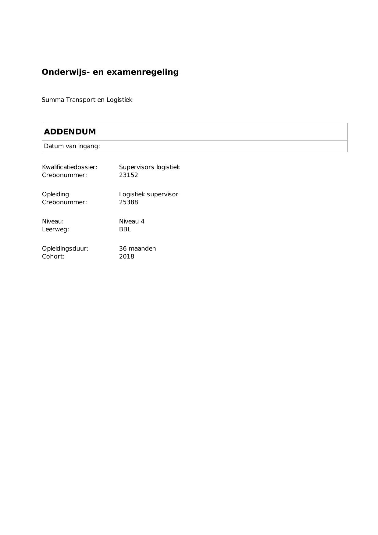 Logistiek supervisor 25388BBL36.01 in cohort 2018-2019