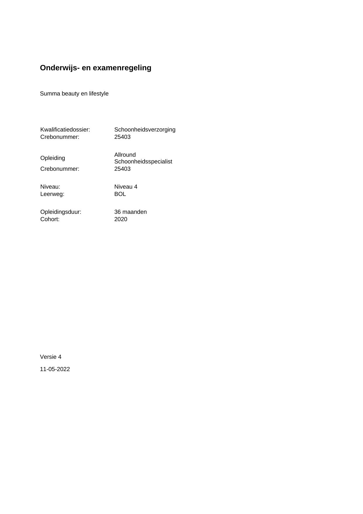 Allround Schoonheidsspecialist 25403BOL36.01 in cohort 2020-2021