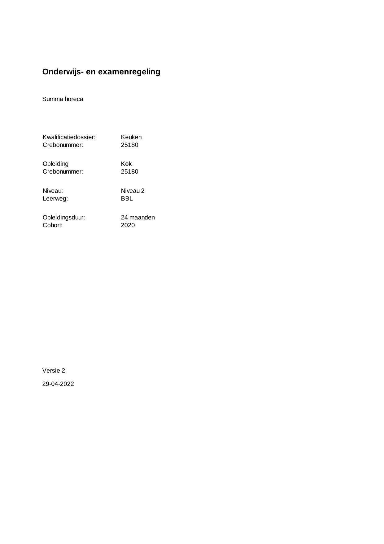 Zelfstandig werkend kok 25182BOL36.01 in cohort 2020-2021