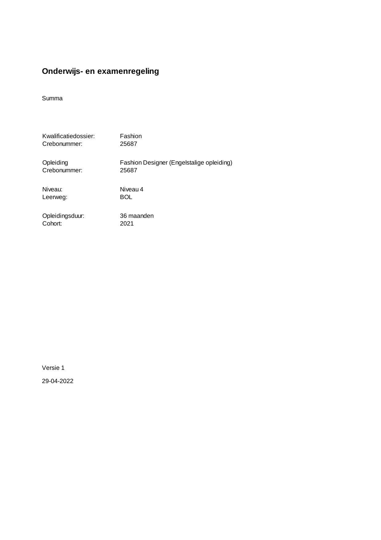 Fashion Designer (Engelstalige opleiding) 25687BOL36.02 in cohort 2021-2022