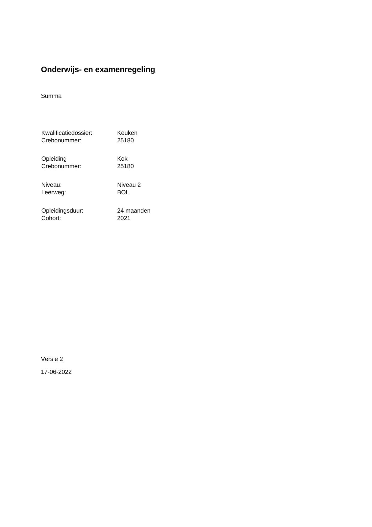 Zelfstandig werkend kok 25182BBL24.01 in cohort 2021-2022