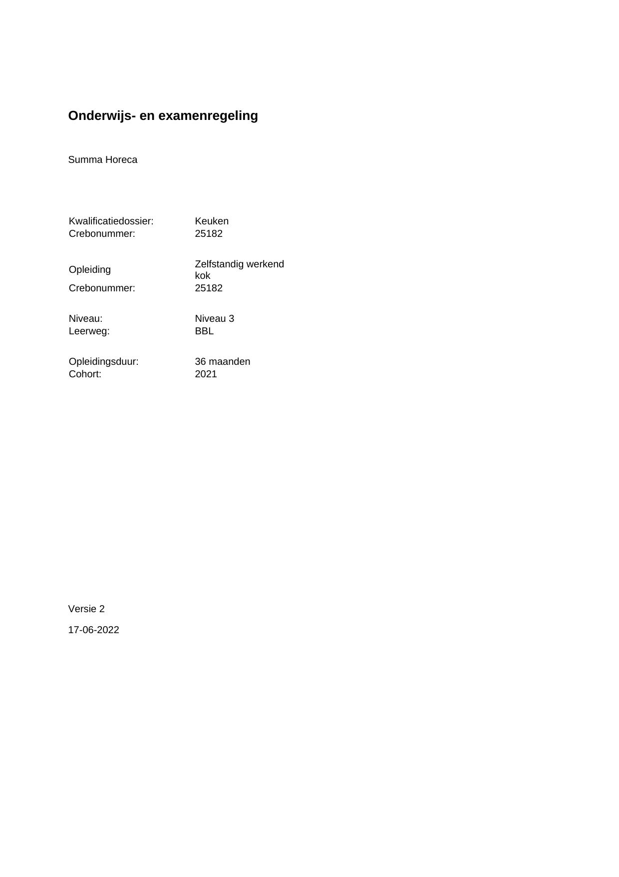 Zelfstandig werkend kok 25182BOL36.01 in cohort 2021-2022