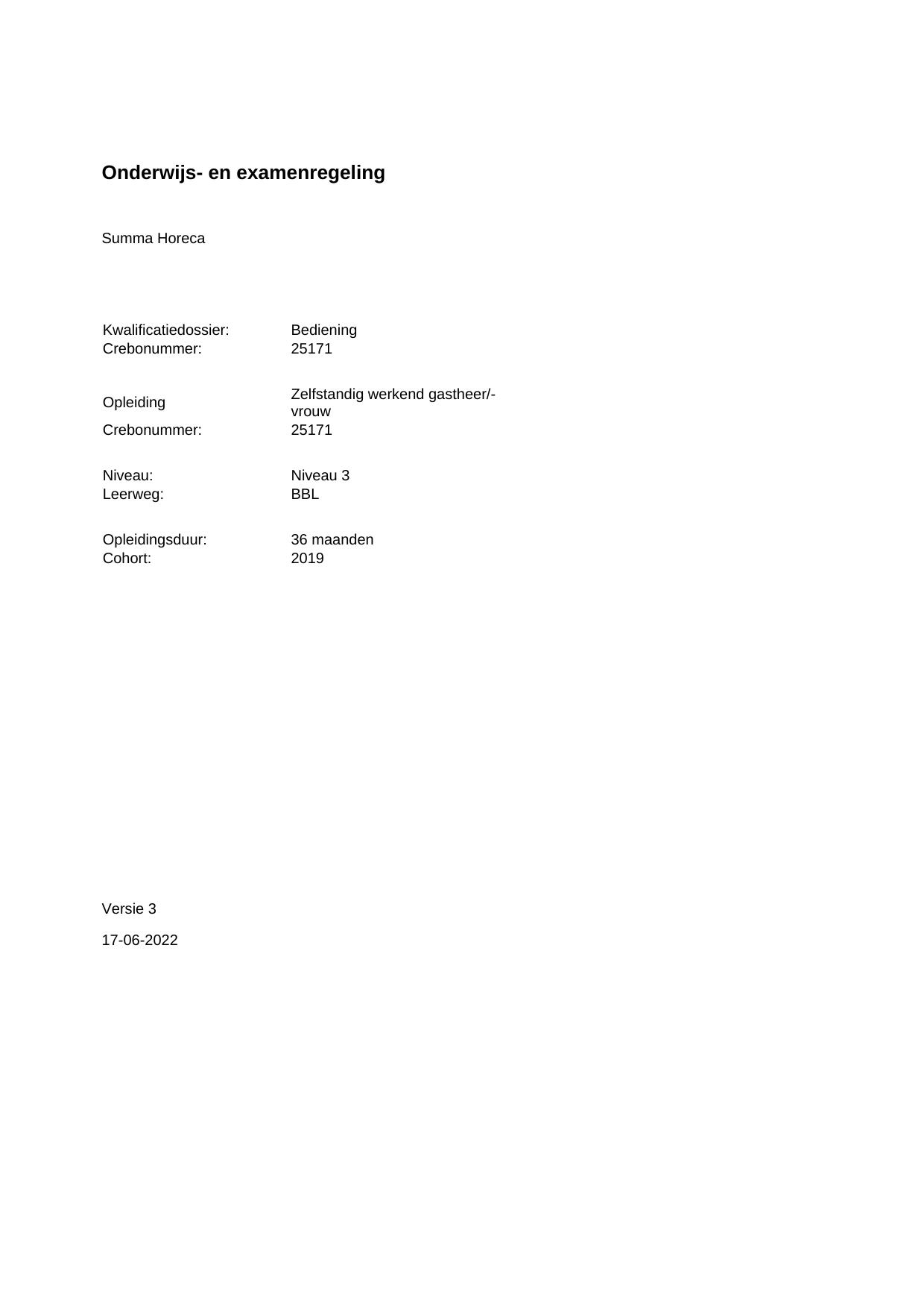 Zelfstandig werkend gastheer/-vrouw 25171BBL36.01 in cohort 2019-2020