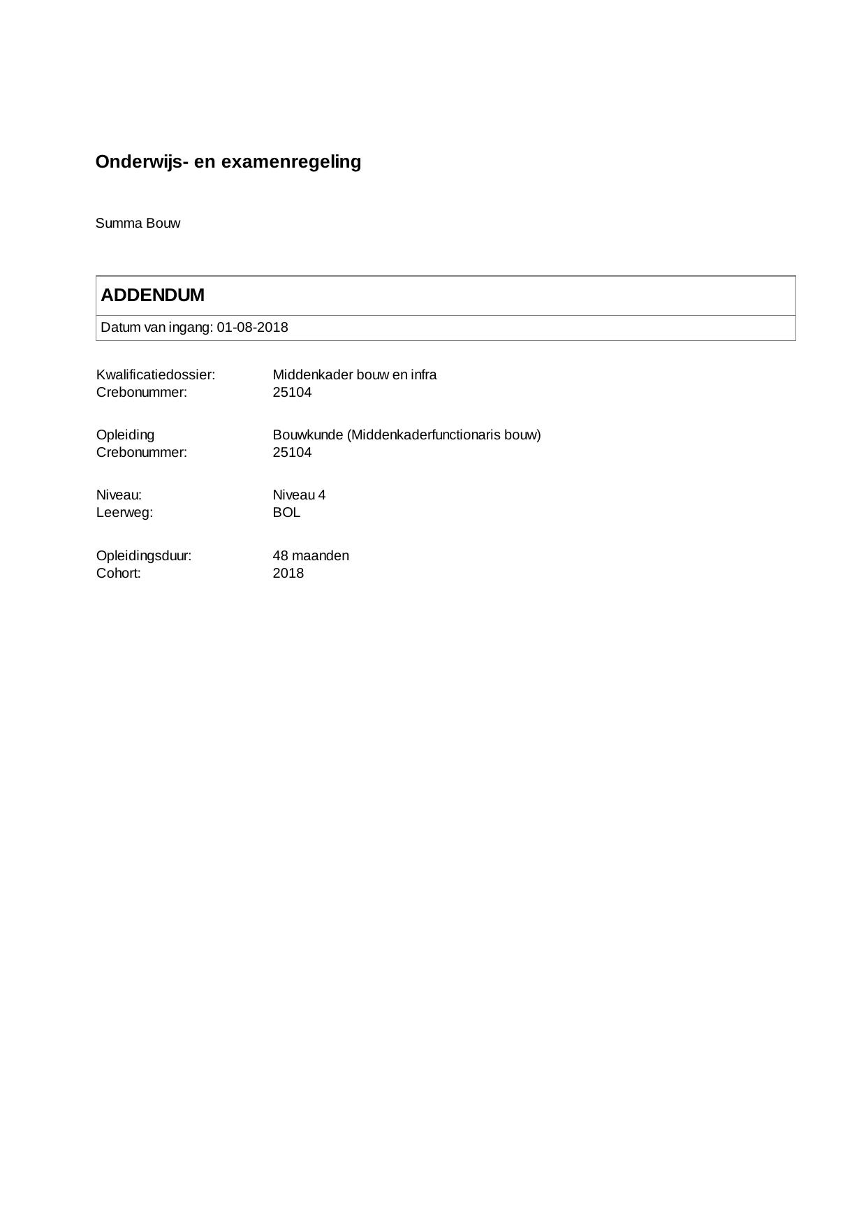 Bouwkunde (Middenkaderfunctionaris bouw) 25104BOL48.01 in cohort 2018-2019