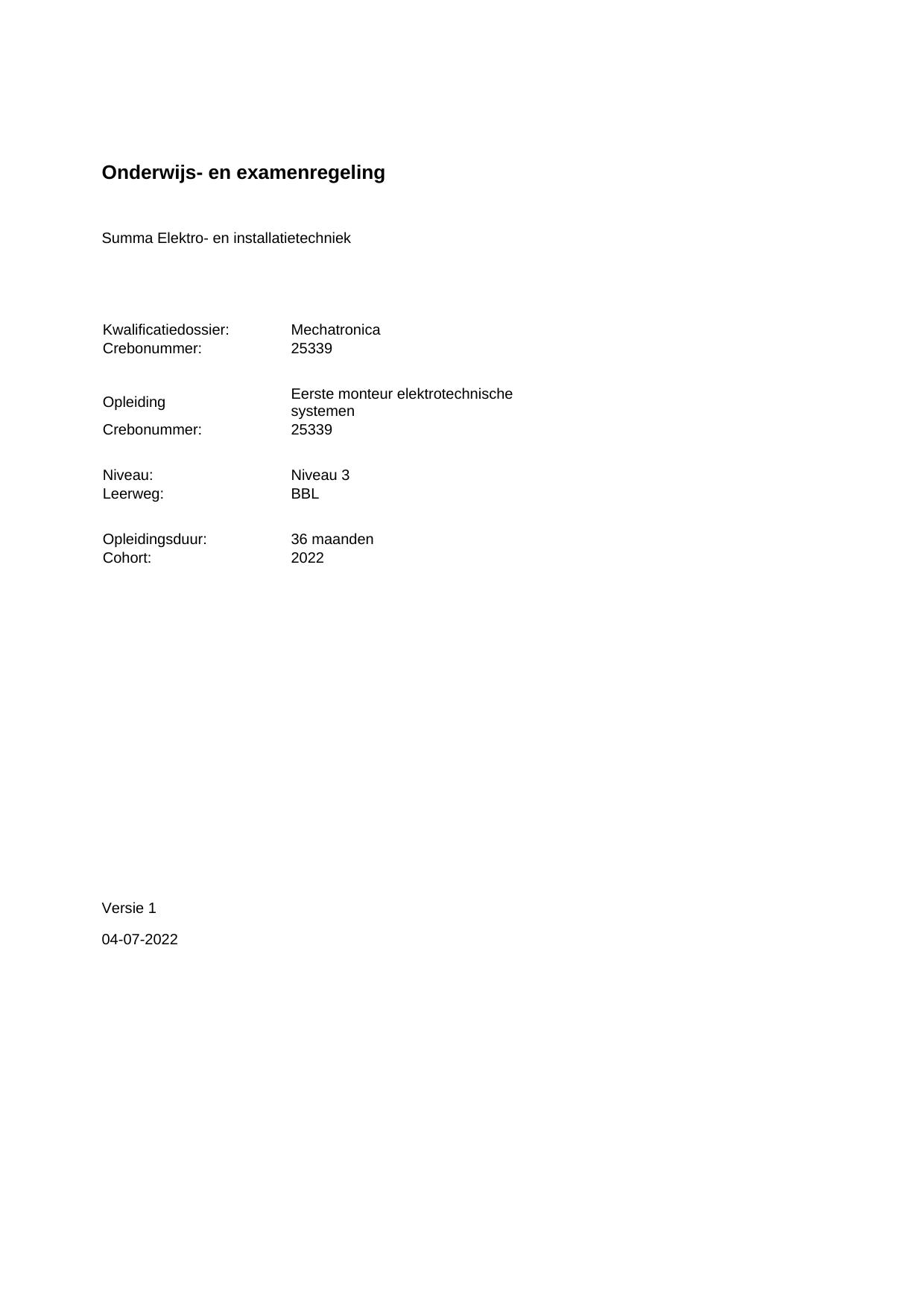 Eerste monteur elektrotechnische systemen 25339BOL36.02 in cohort 2022-2023