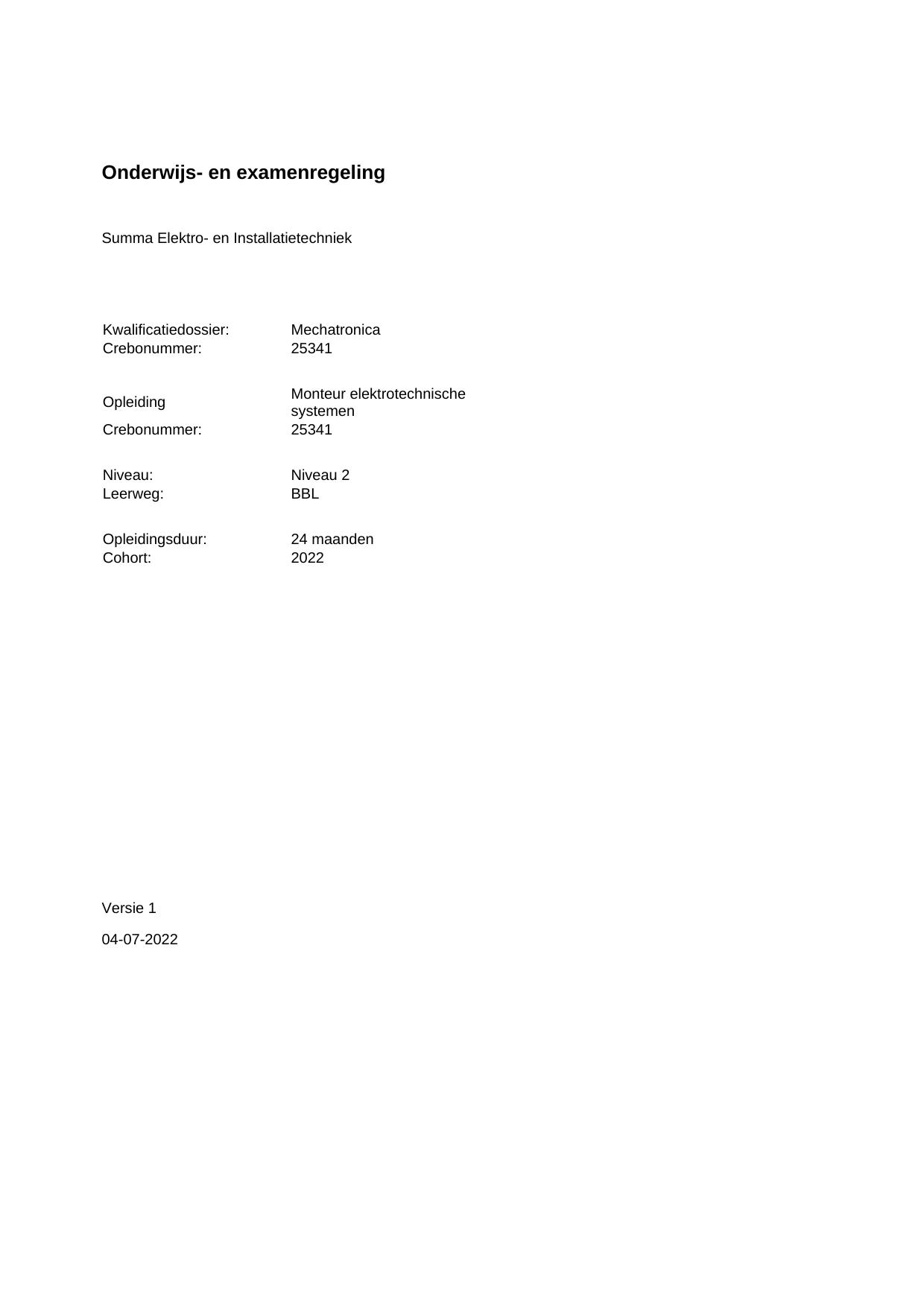 Monteur elektrotechnische systemen 25341BOL24.01 in cohort 2022-2023