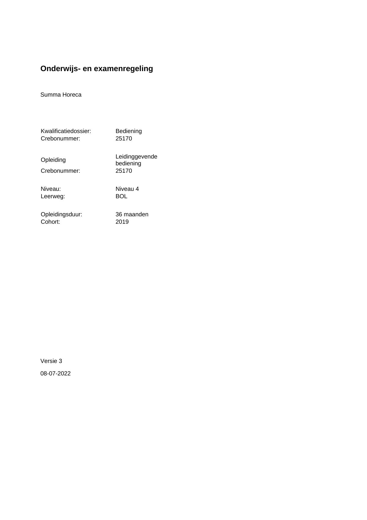 Leidinggevende bediening 25170BOL36.01 in cohort 2019-2020