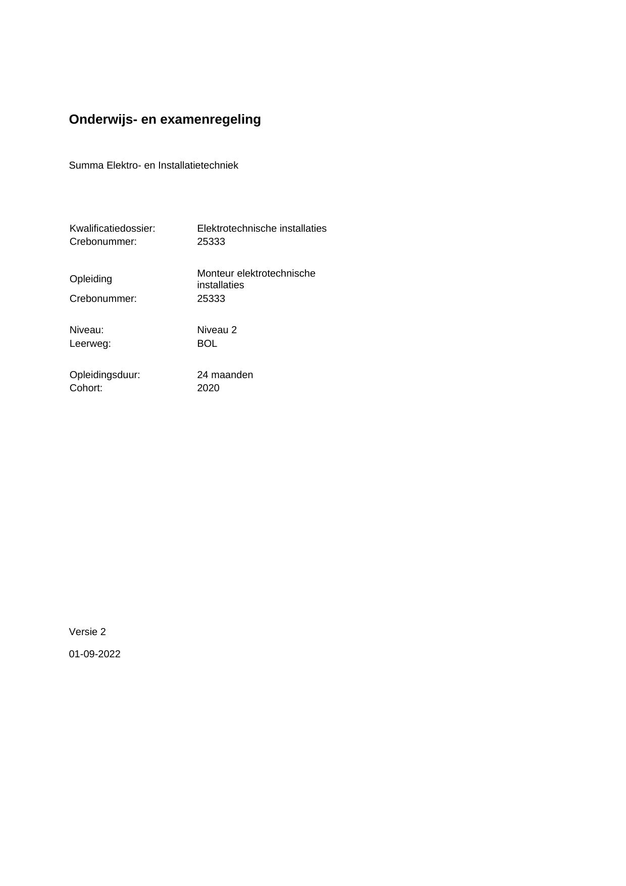 Monteur elektrotechnische installaties 25333BOL24.02 in cohort 2020-2021