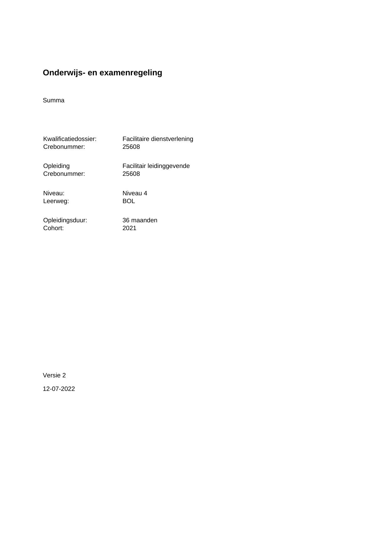 Facilitair leidinggevende 25608BOL36.01 in cohort 2021-2022