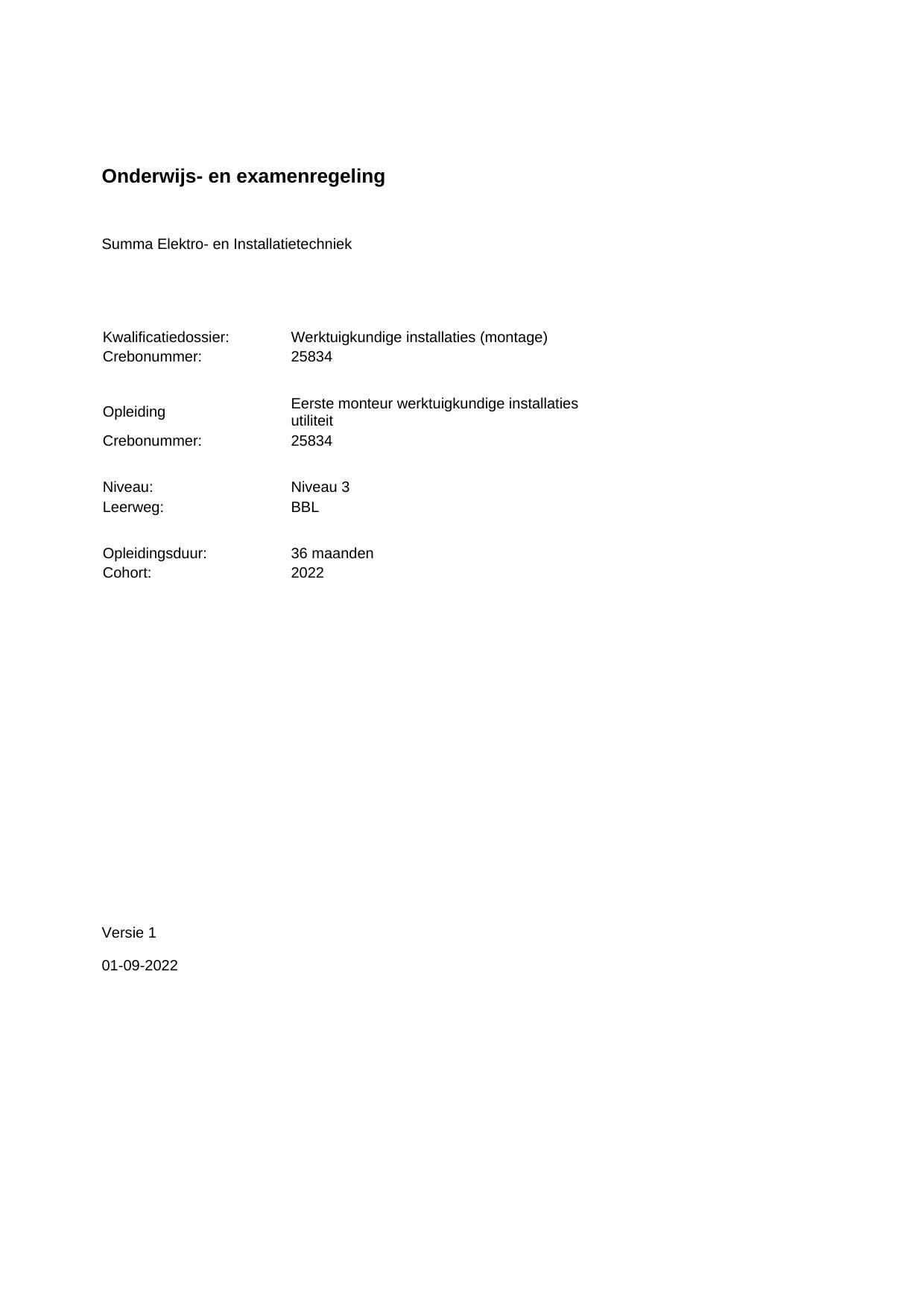 Eerste monteur werktuigkundige installaties utiliteit 25834BBL36.01 in cohort 2022-2023