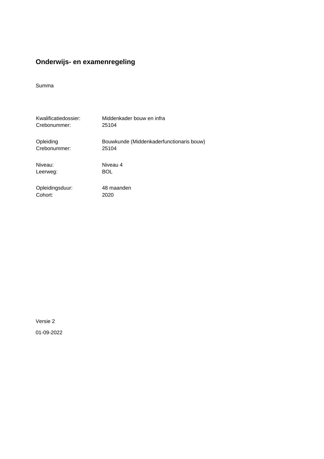 Bouwkunde (Middenkaderfunctionaris bouw) 25104BOL48.01 in cohort 2020-2021