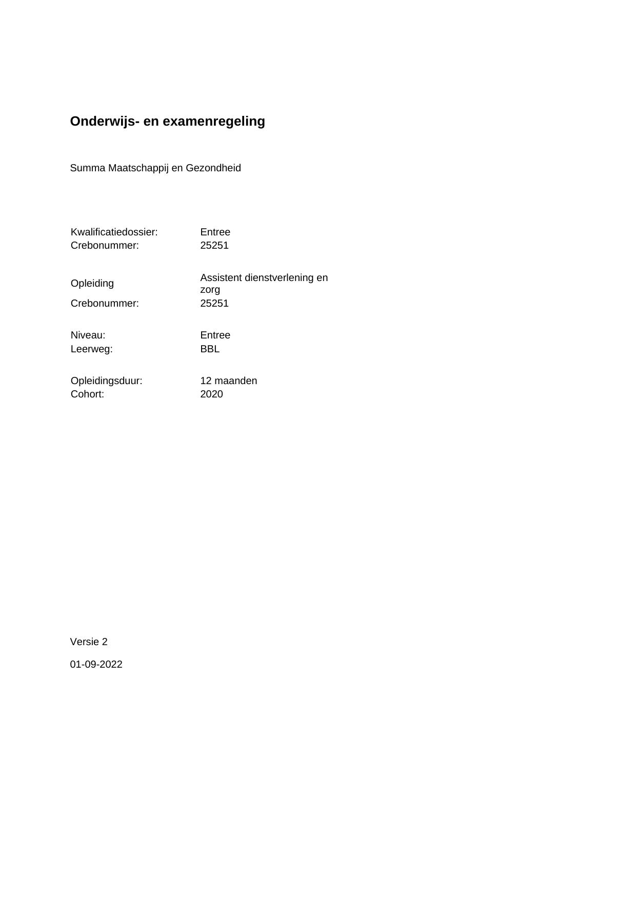 Duaal - Assistent dienstverlening en zorg 25251BBL12.04 in cohort 2020-2021