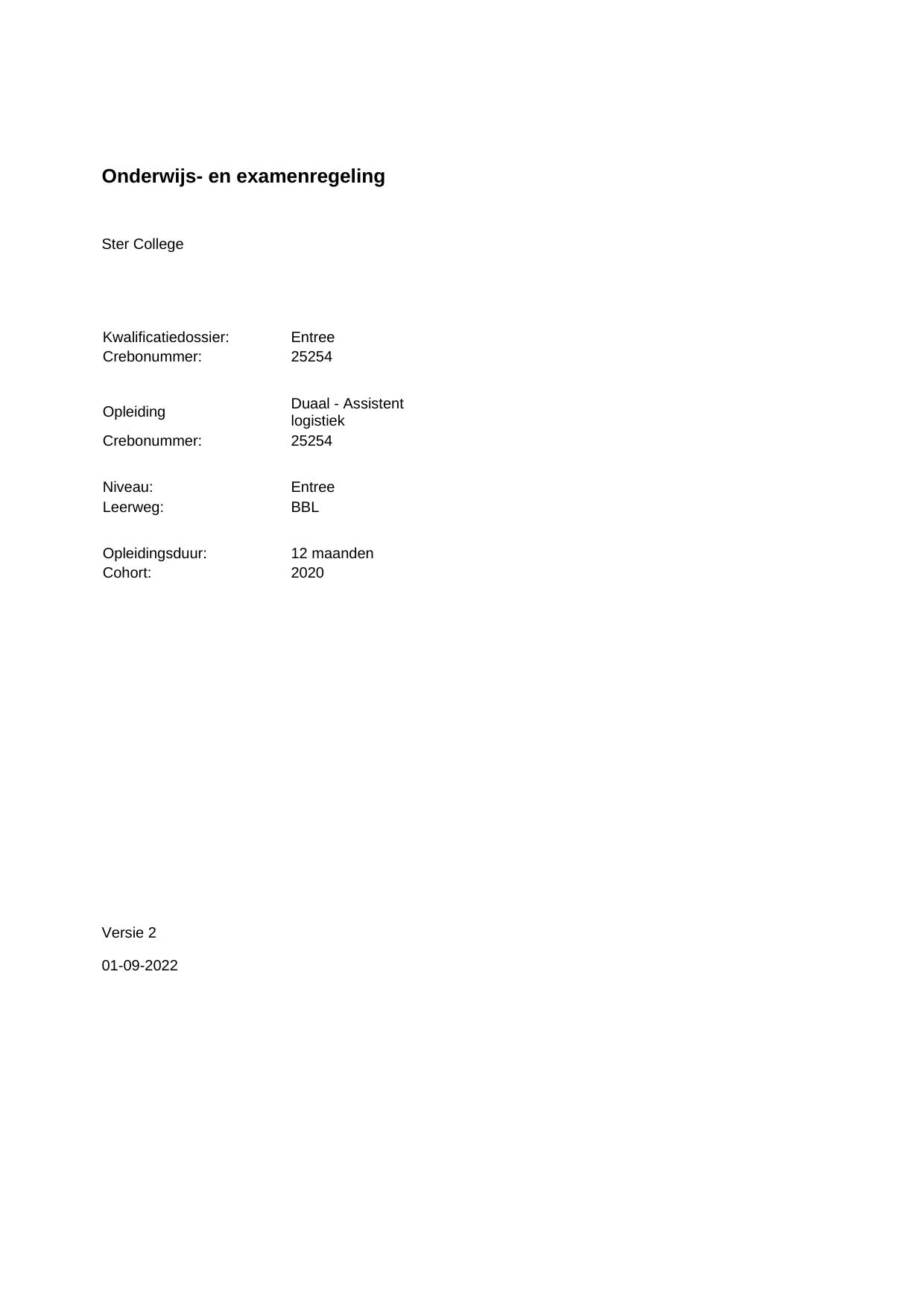 Duaal - Assistent logistiek 25254BBL12.02 in cohort 2020-2021