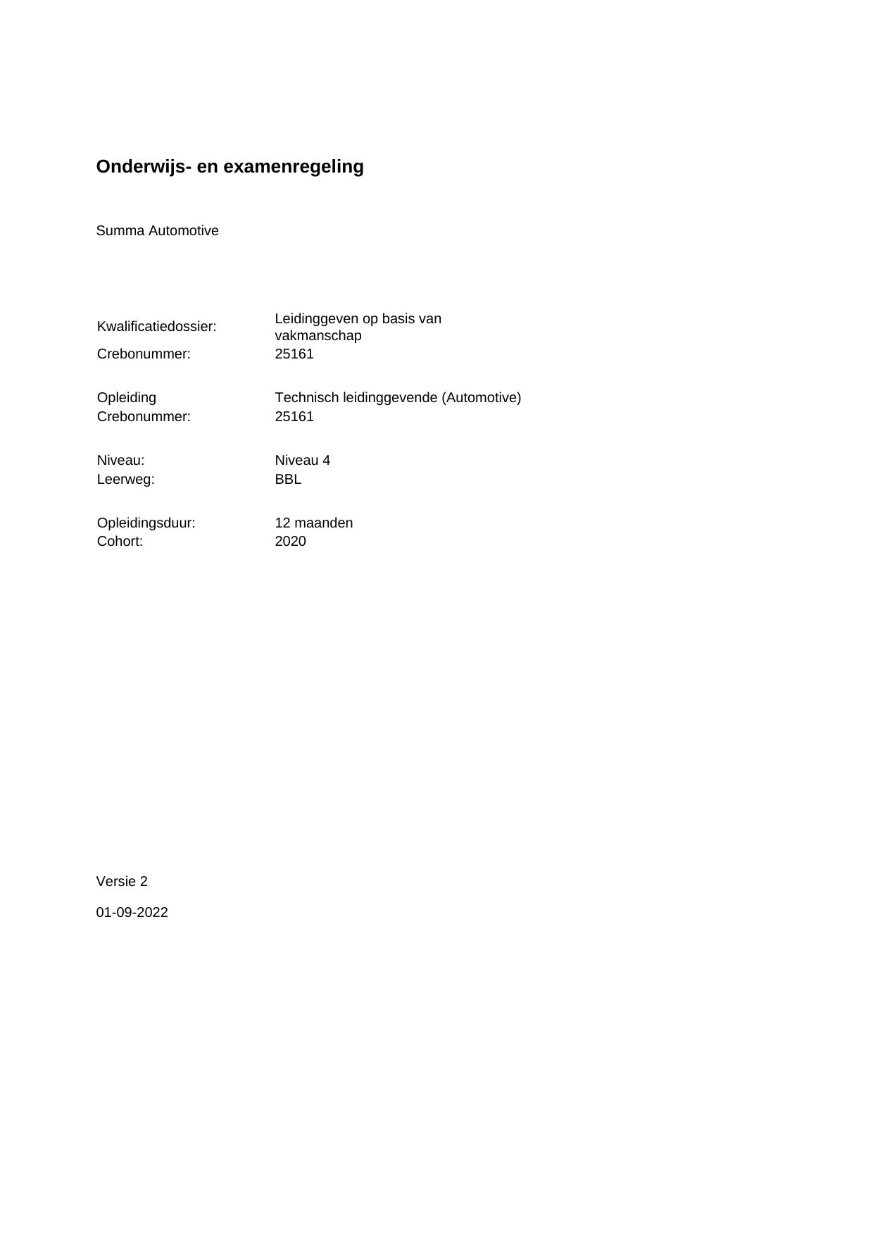 Technisch leidinggevende (Automotive) 25161BBL12.02 in cohort 2020-2021