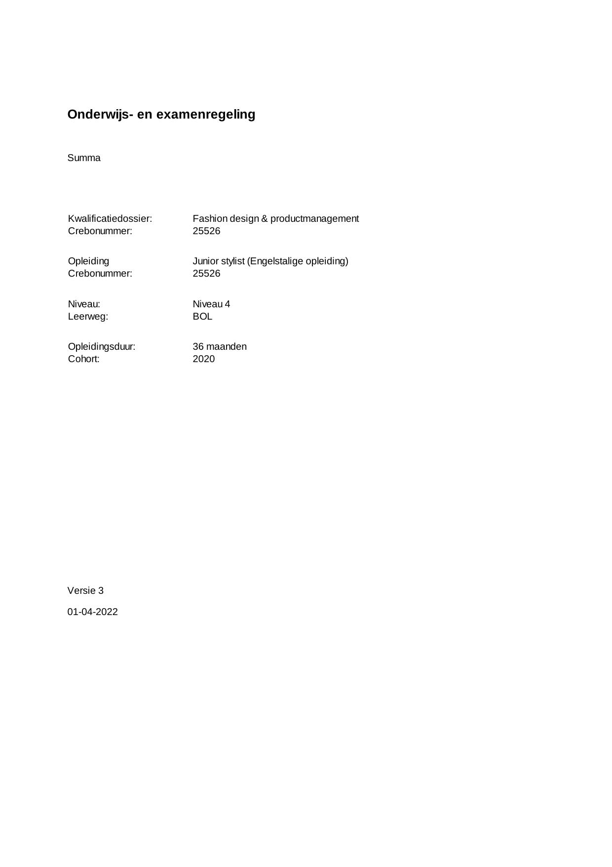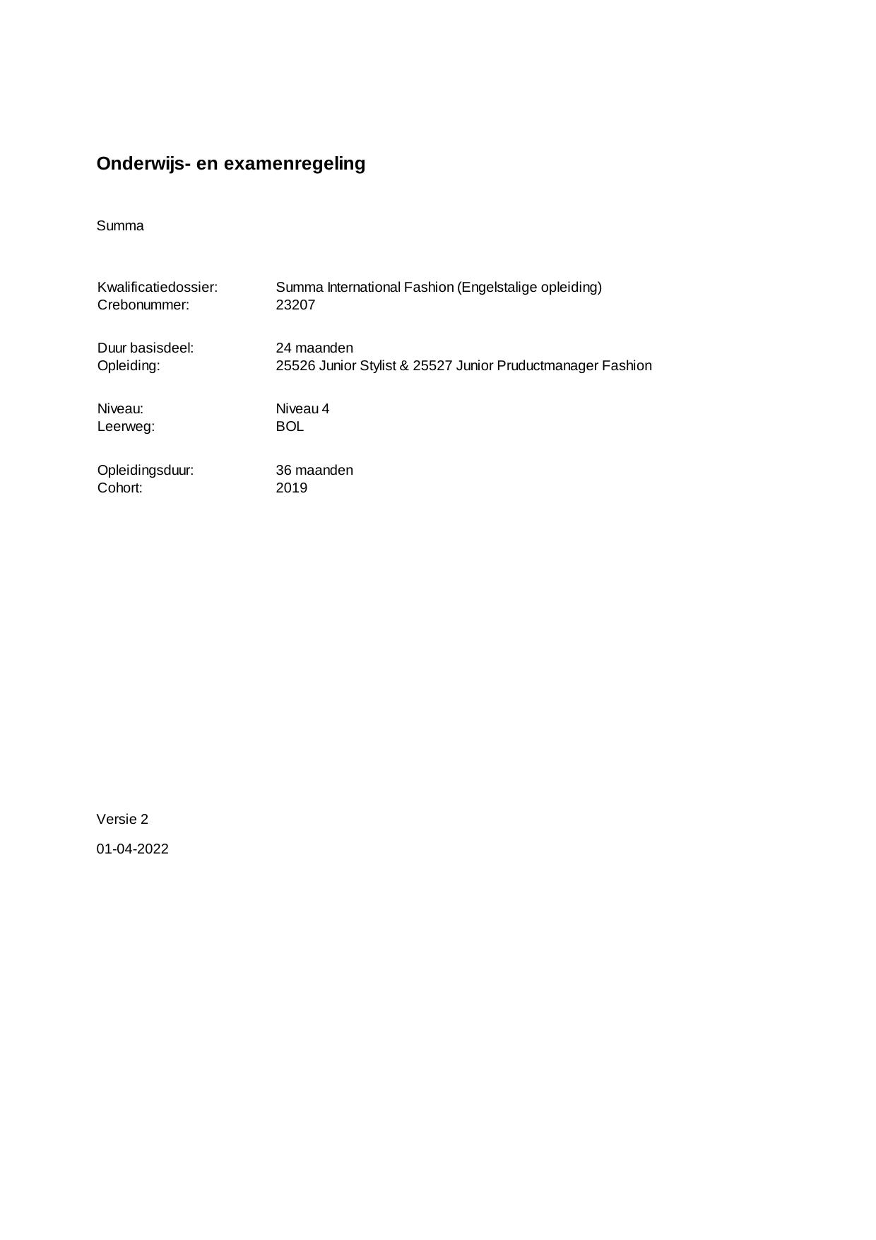 Summa International Fashion (Engelstalige opleiding) 23207BOL36.01 in cohort 2019-2020