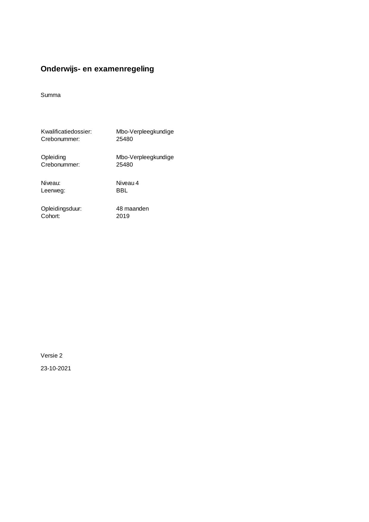 Mbo-Verpleegkundige 25480BBL48.01 in cohort 2019-2020