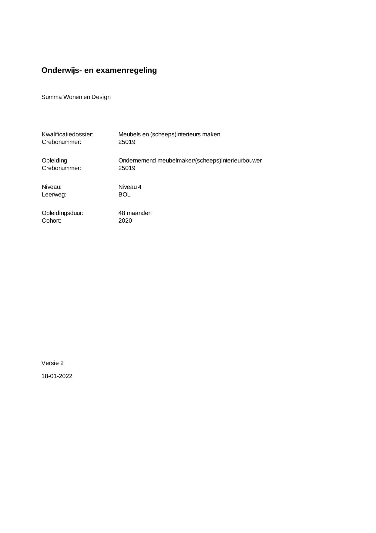 Ondernemend meubelmaker/(scheeps)interieurbouwer 25019BOL48.01 in cohort 2020-2021