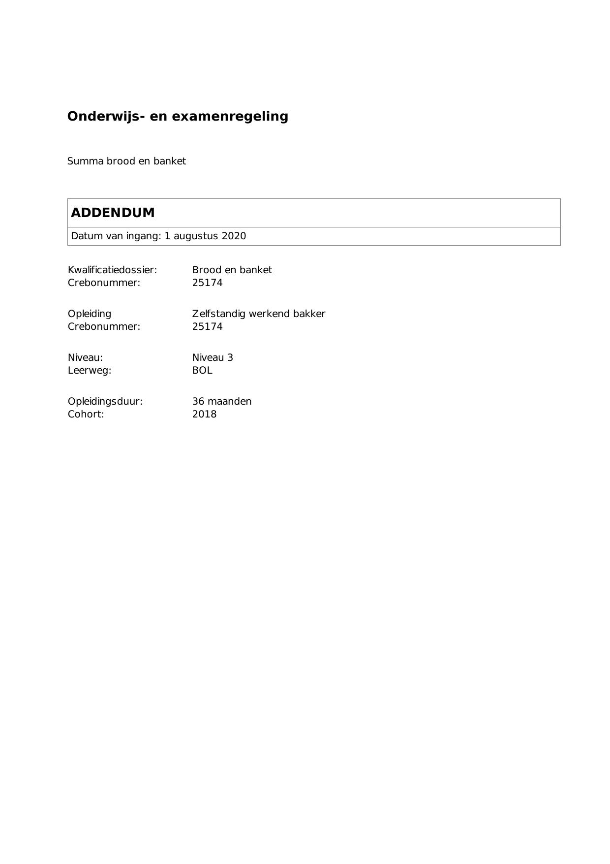 Zelfstandig werkend bakker 25174BOL36.01 in cohort 2018-2019