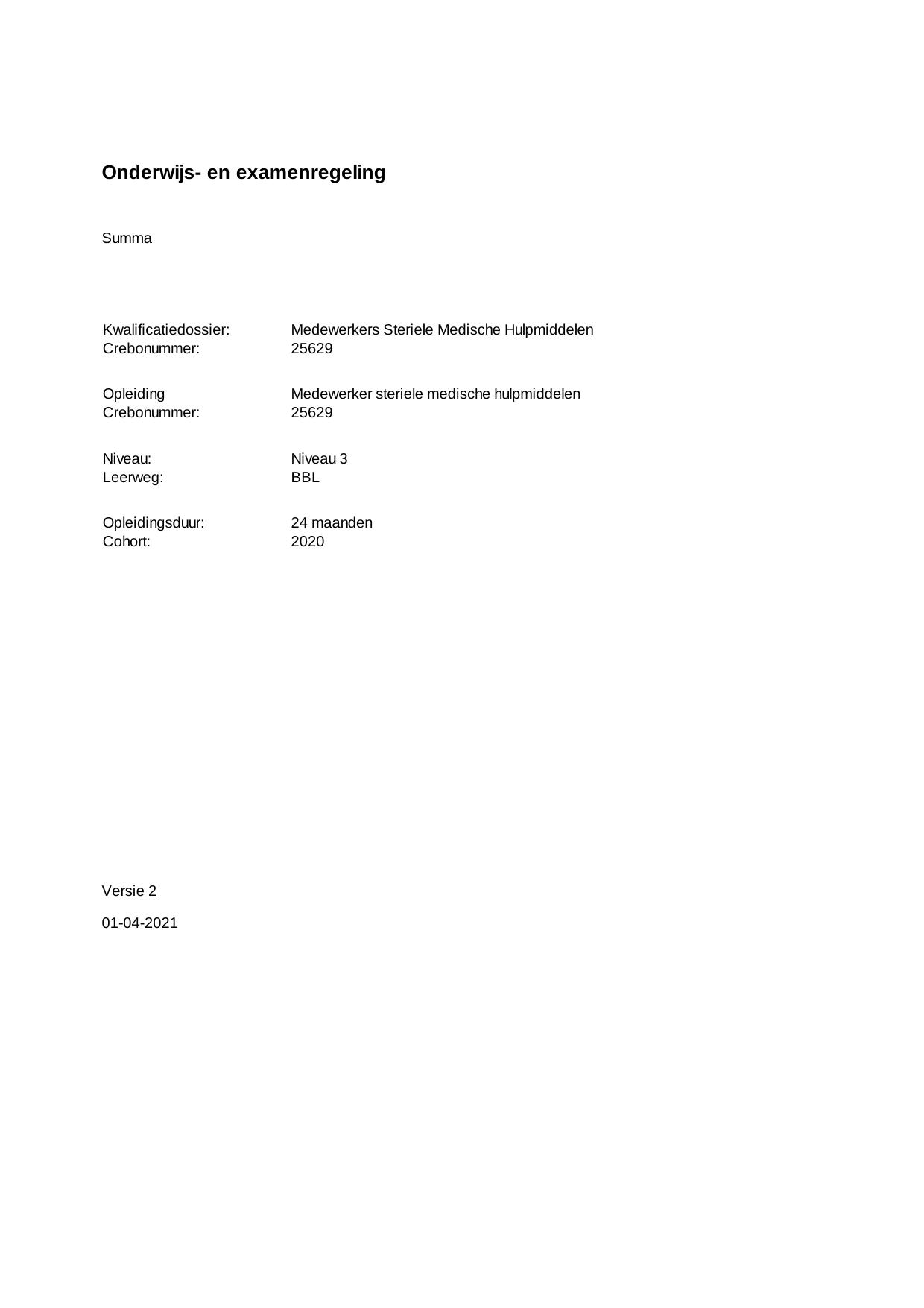 Medewerker steriele medische hulpmiddelen 25629BBL24.01 in cohort 2020-2021