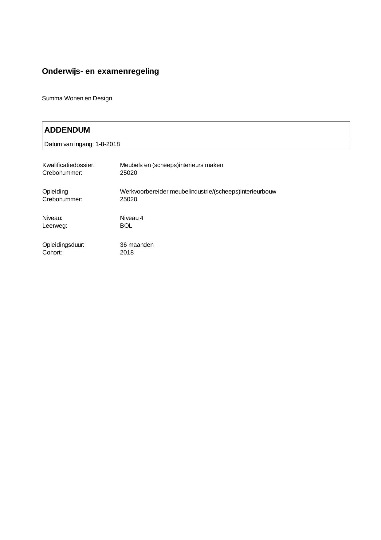 Werkvoorbereider meubelindustrie/(scheeps)interieurbouw 25020BOL36.01 in cohort 2018-2019