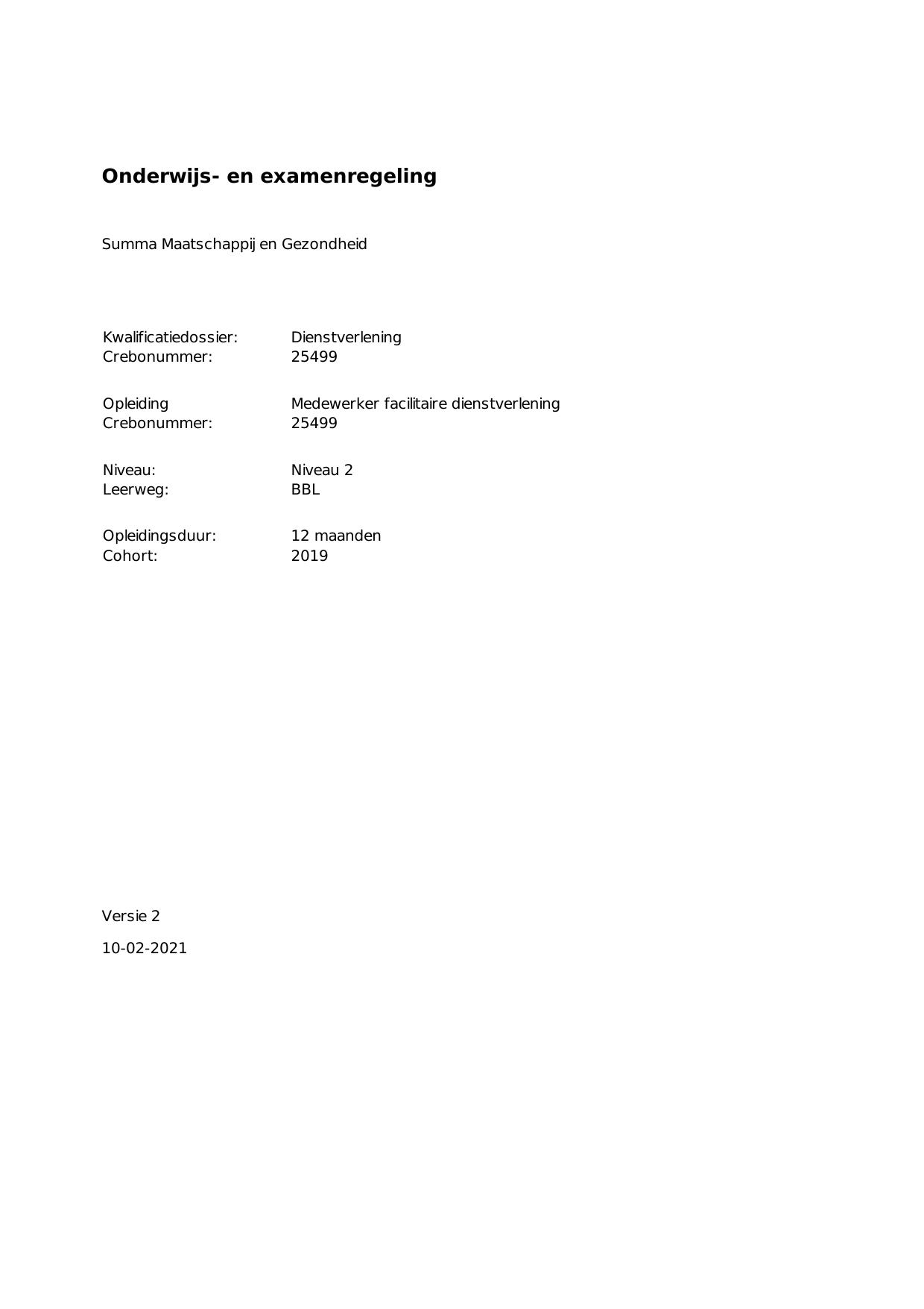 Medewerker facilitaire dienstverlening 25499BBL12.03 in cohort 2019-2020
