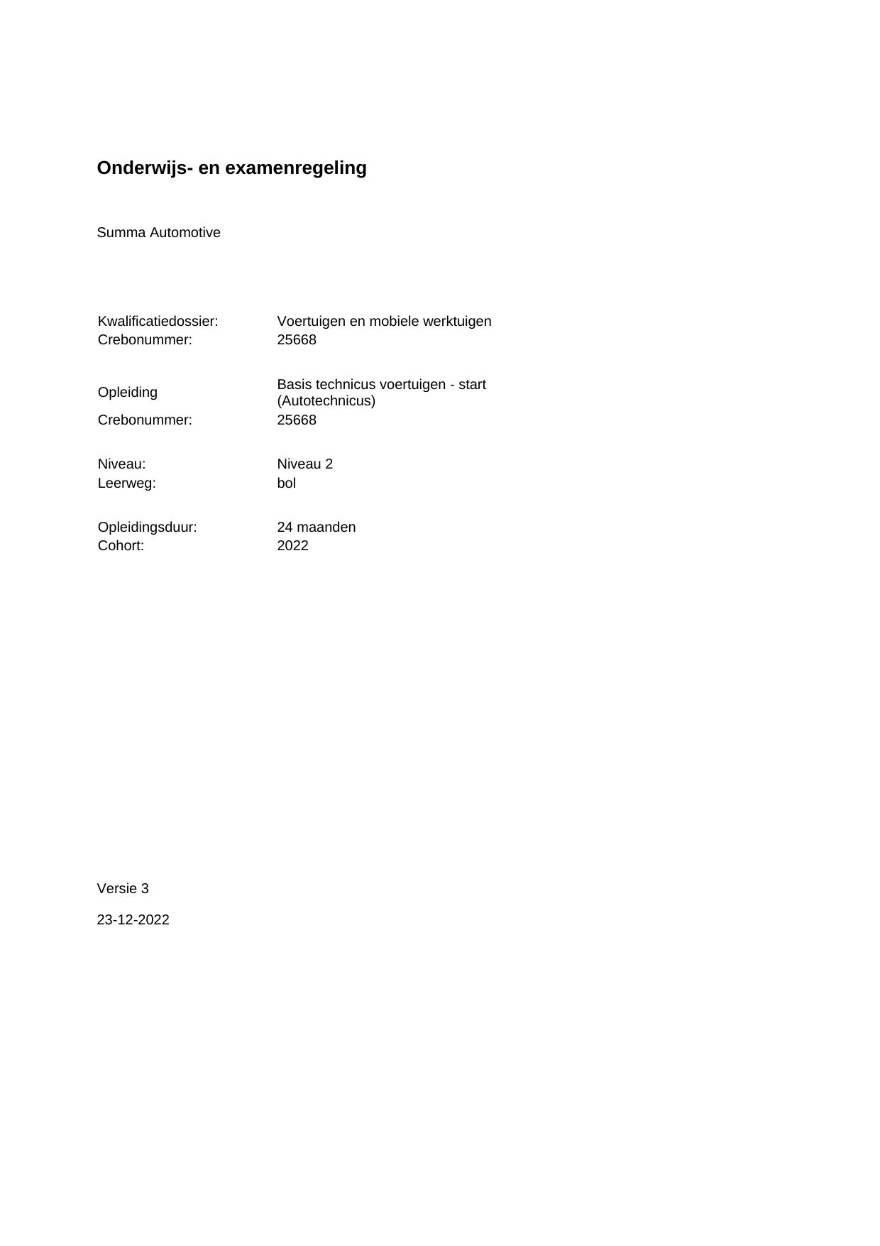Basis technicus voertuigen - start (Autotechnicus) 25668BOL24.01 in cohort 2022-2023