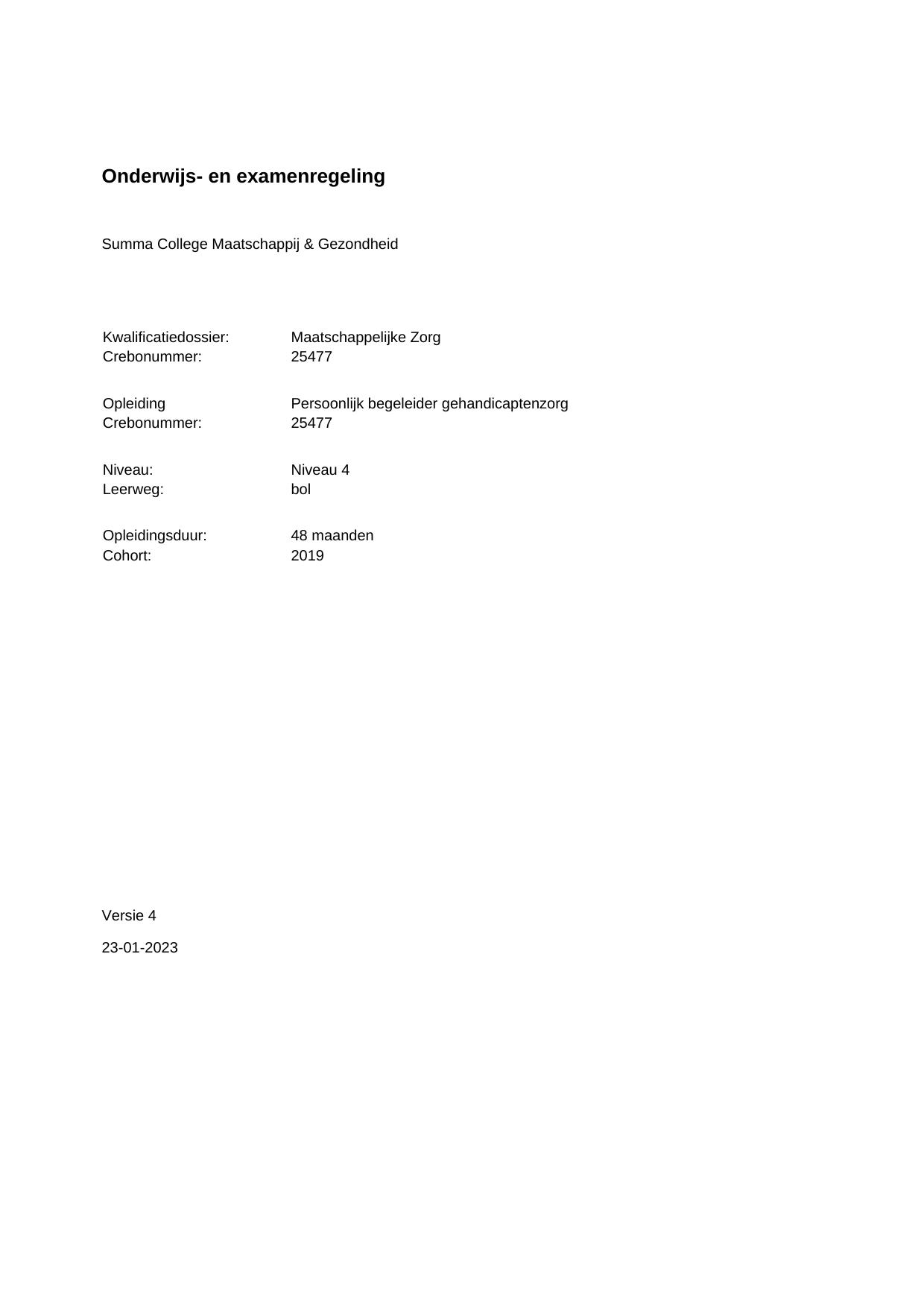 Maatschappelijke Zorg niveau 4 23181BOL48.01 in cohort 2019-2020