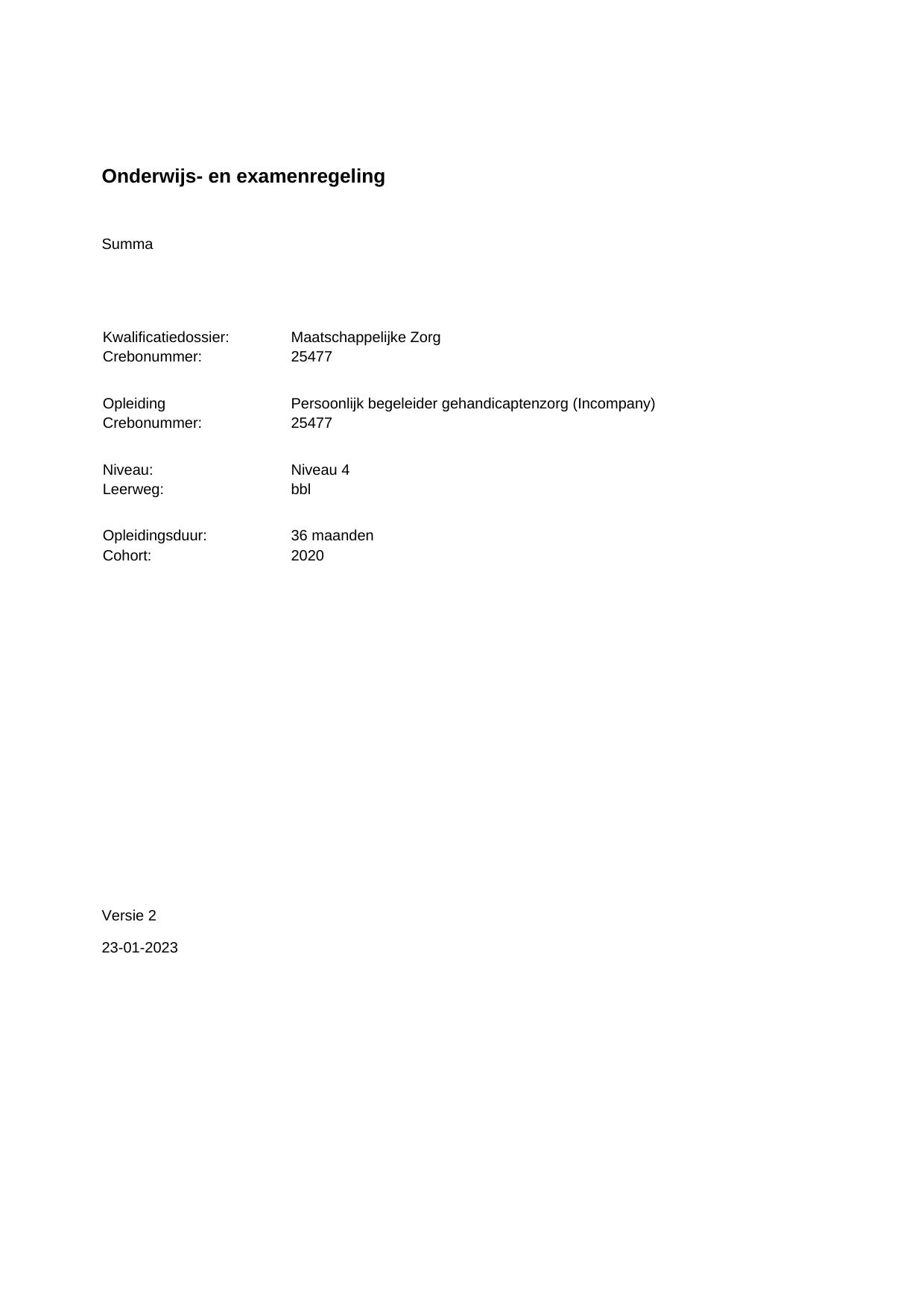 Persoonlijk begeleider gehandicaptenzorg (Incompany) 25477BBL36.02 in cohort 2020-2021