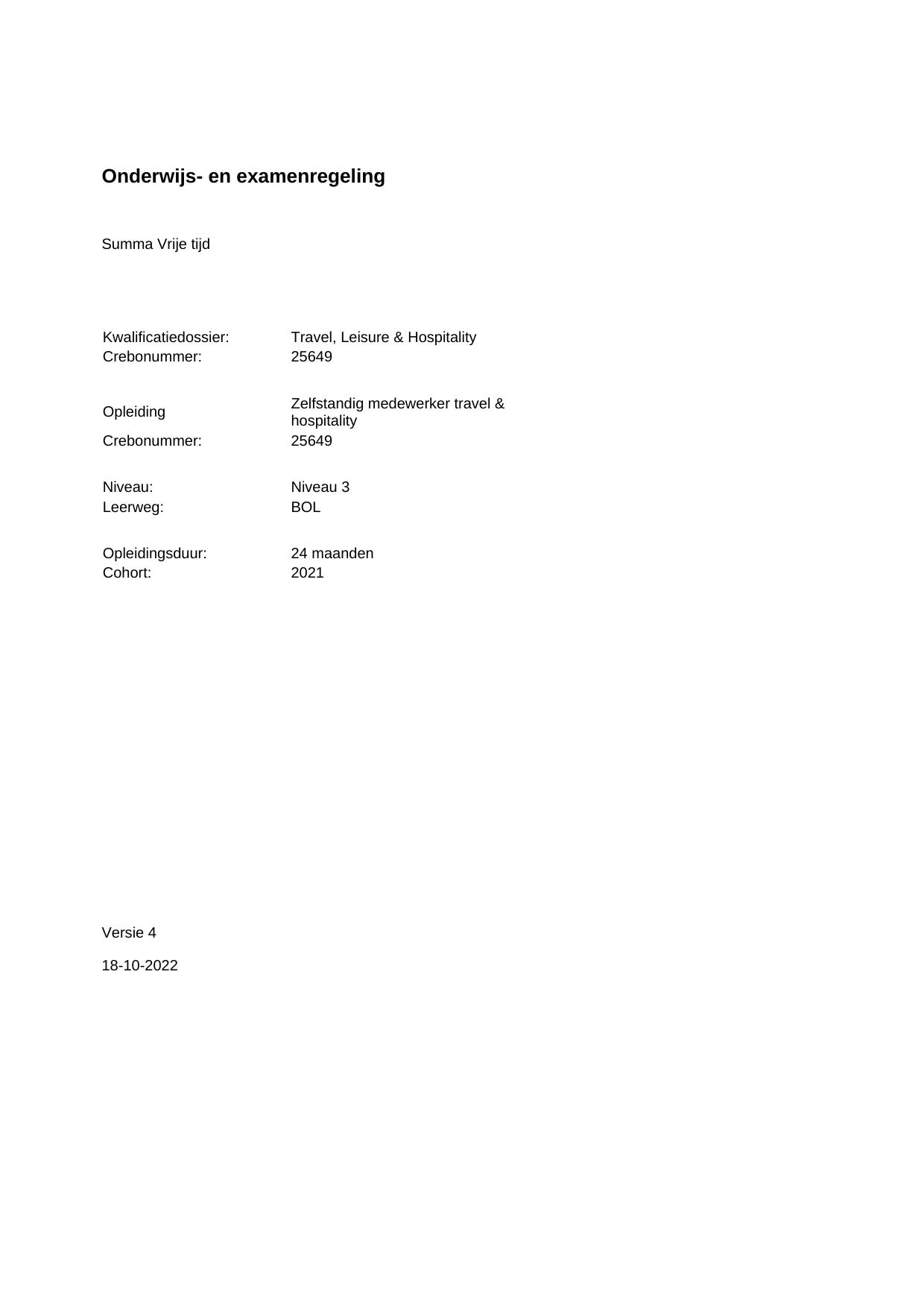 Zelfstandig medewerker travel & hospitality 25649BOL24.01 in cohort 2021-2022