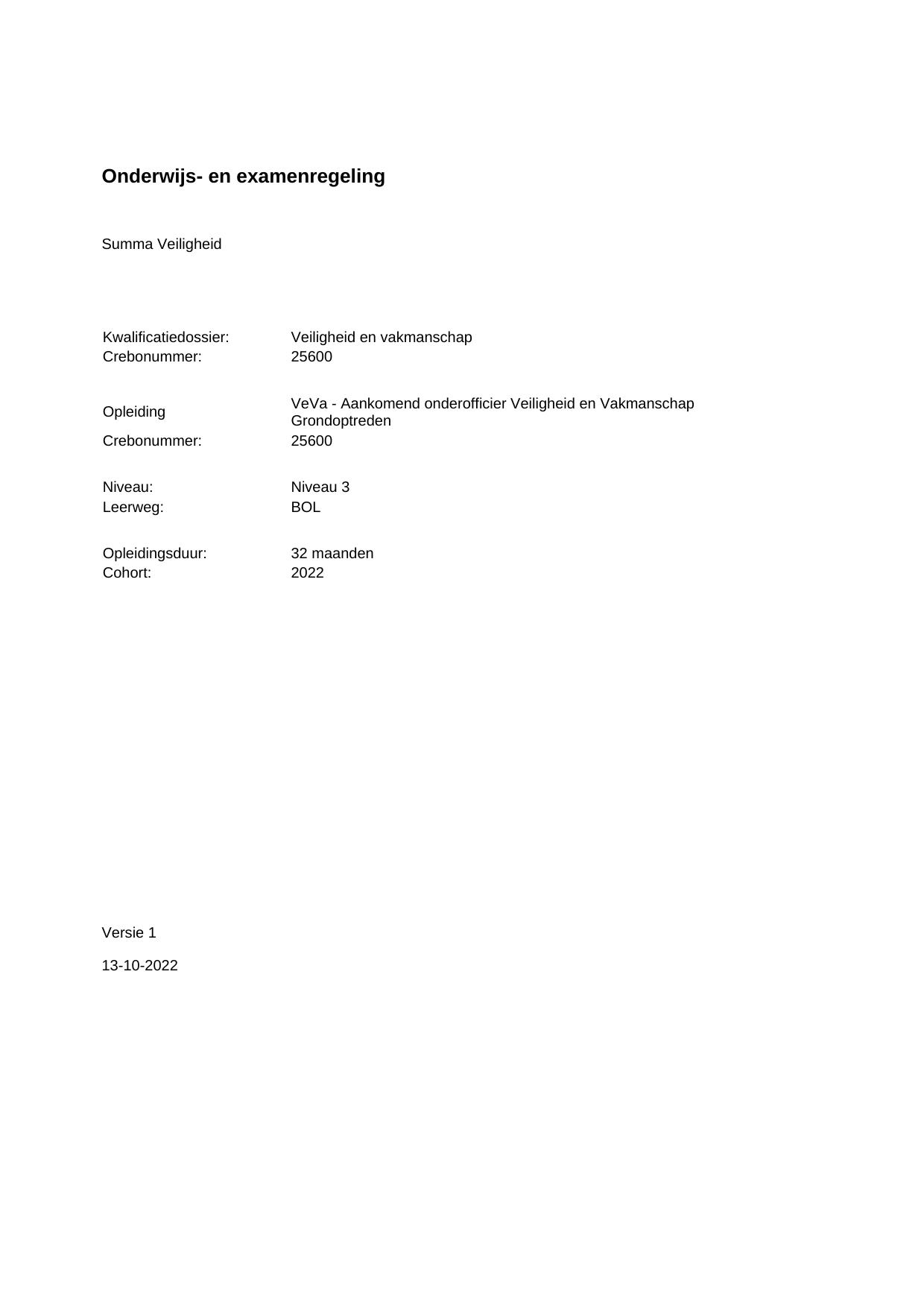 VeVa - Aankomend onderofficier Veiligheid en Vakmanschap Grondoptreden (Mariniers) 25600BOL32.01 in cohort 2022-2023