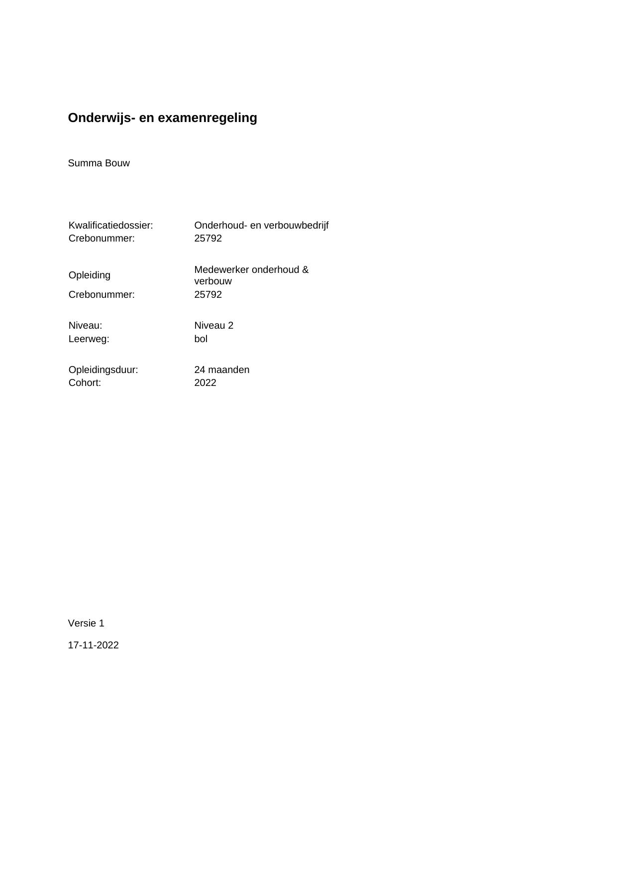 Medewerker onderhoud & verbouw 25792BBL24.01 in cohort 2022-2023
