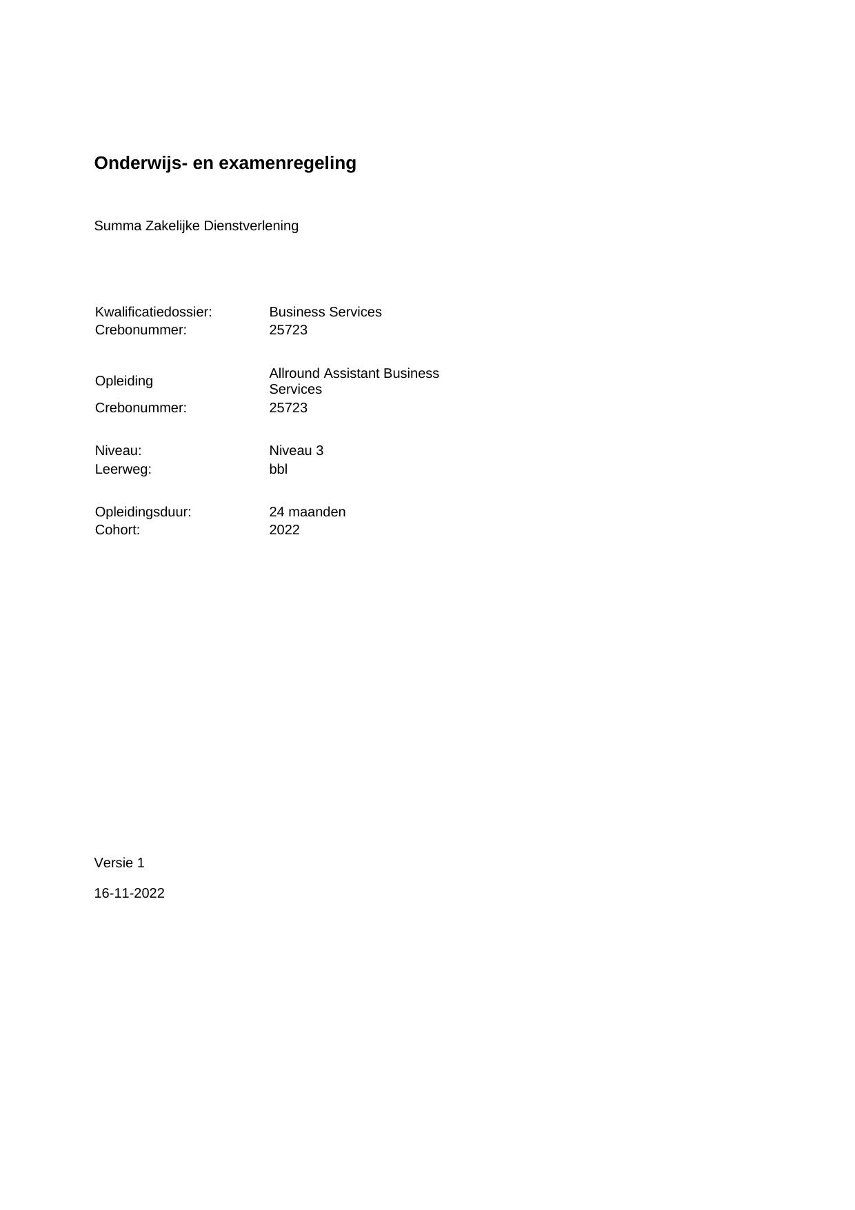 Assistant Business Services 25724BOL12.01 in cohort 2022-2023