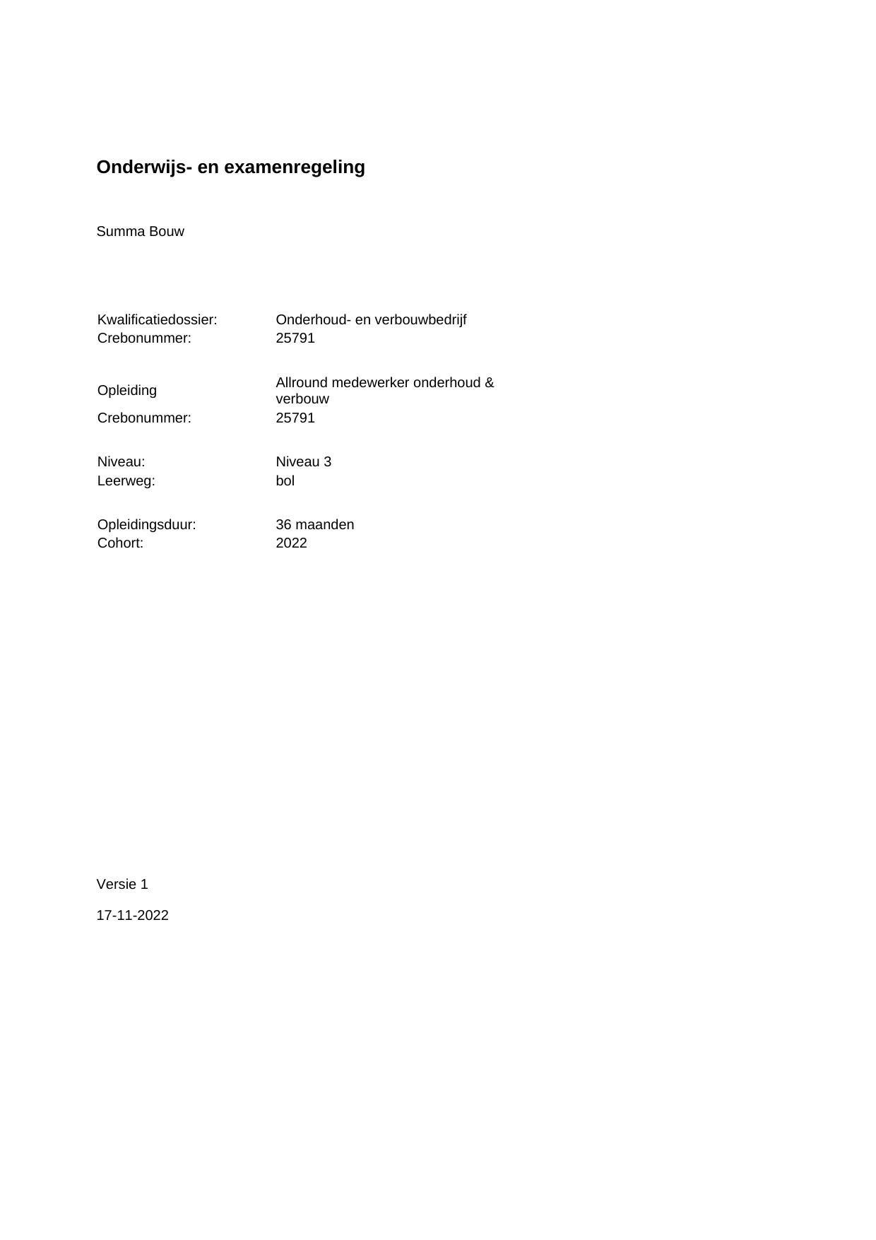 Allround medewerker onderhoud & verbouw 25791BOL36.02 in cohort 2022-2023