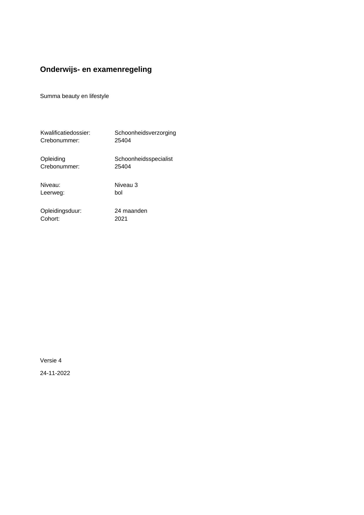 Allround Schoonheidsspecialist (niveau 4) 23159BOL36.01 in cohort 2021-2022