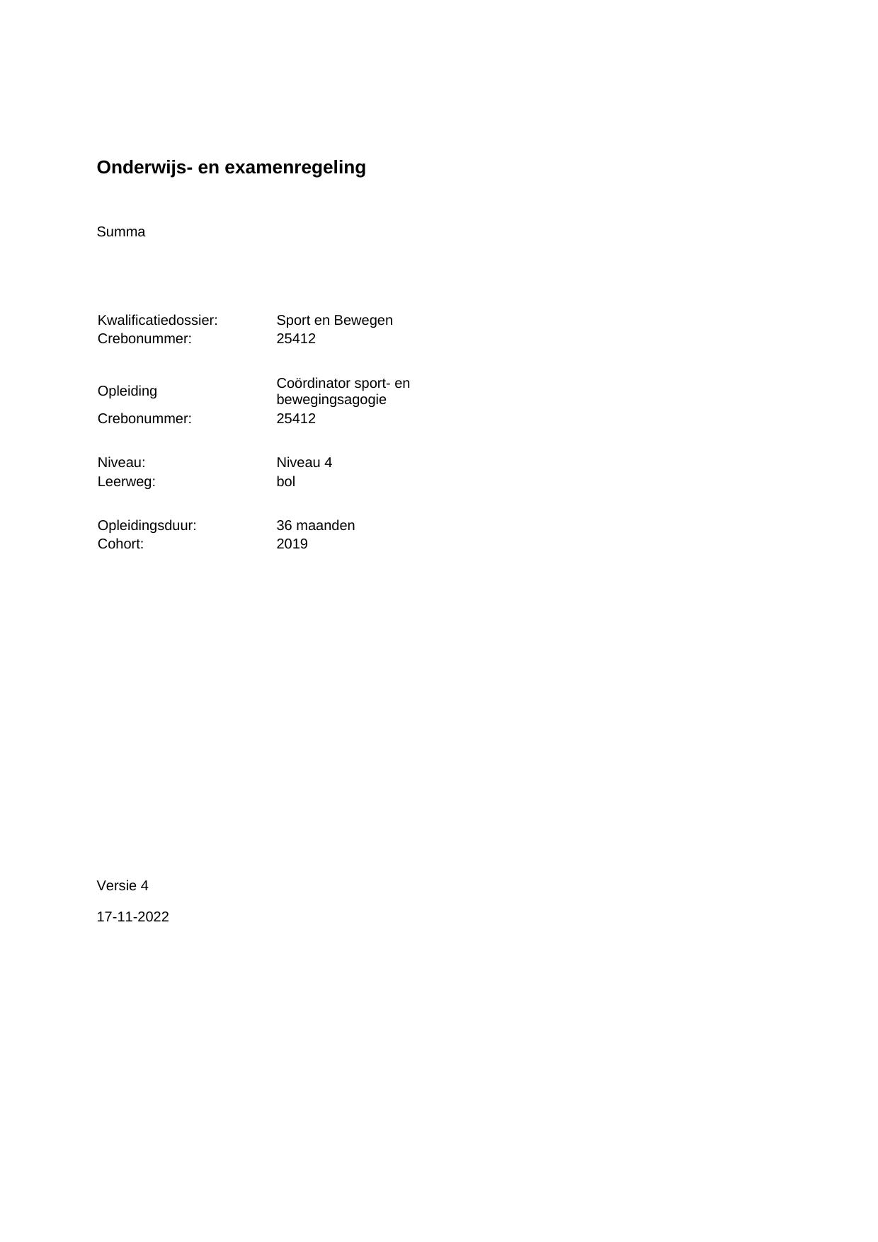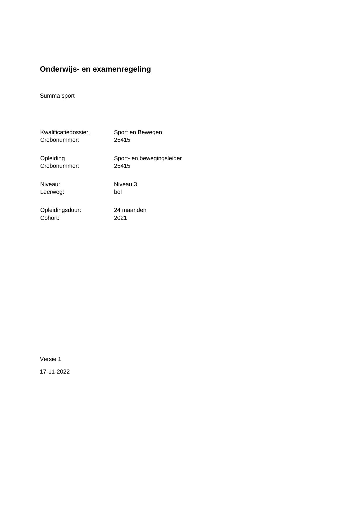 Sport- en bewegingsleider 25415BOL24.01 in cohort 2021-2022