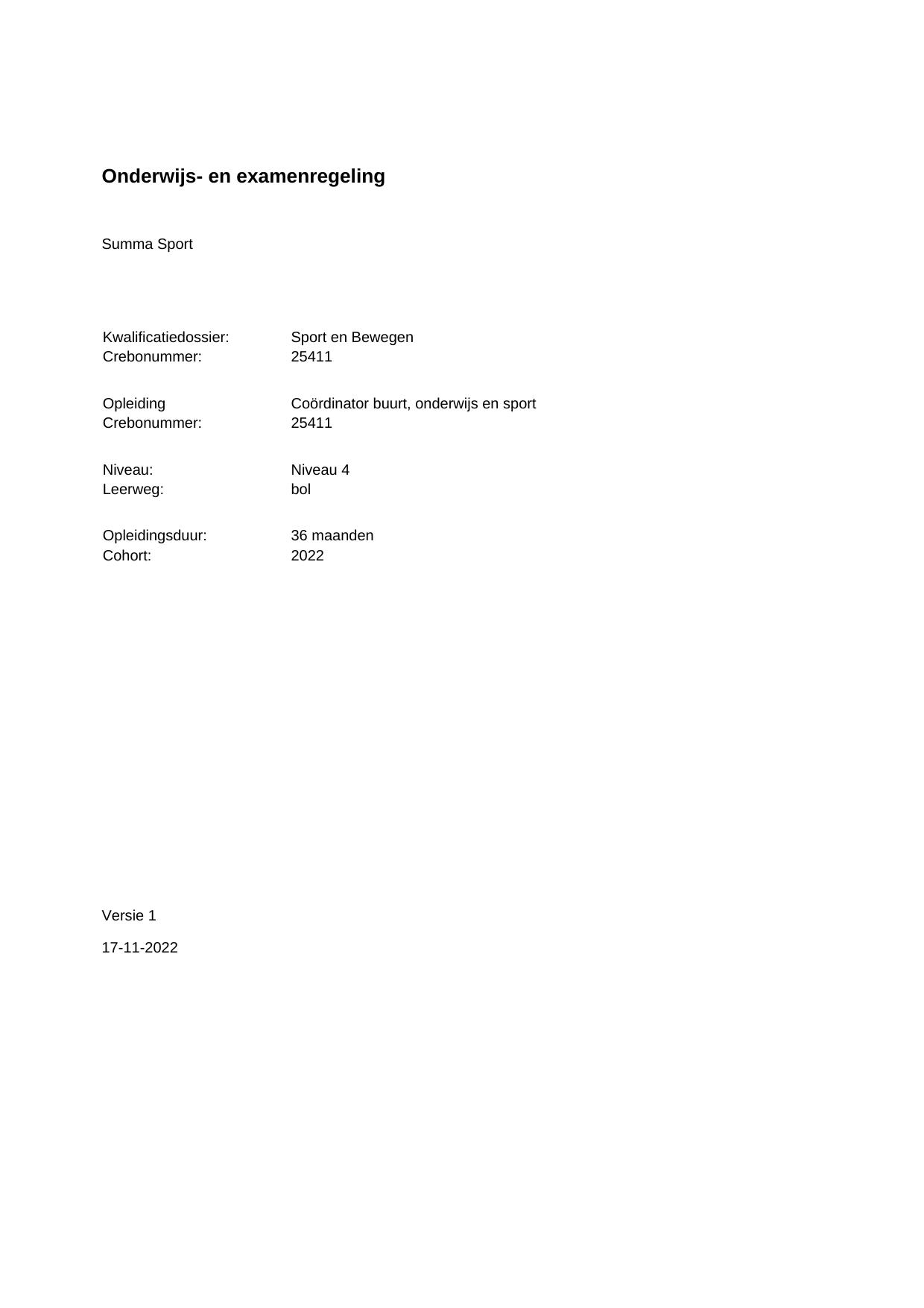 Coördinator sportinstructie, training en coaching 25414BOL36.01 in cohort 2022-2023