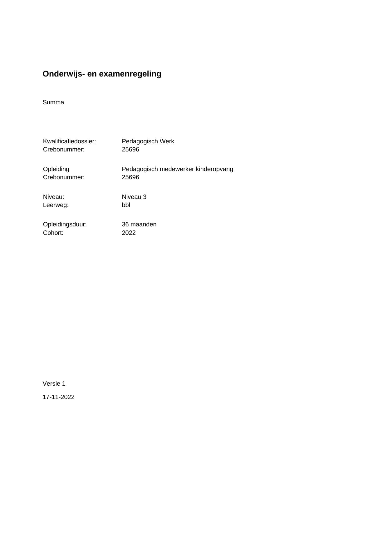 Pedagogisch medewerker kinderopvang 25696BBL36.01 in cohort 2022-2023